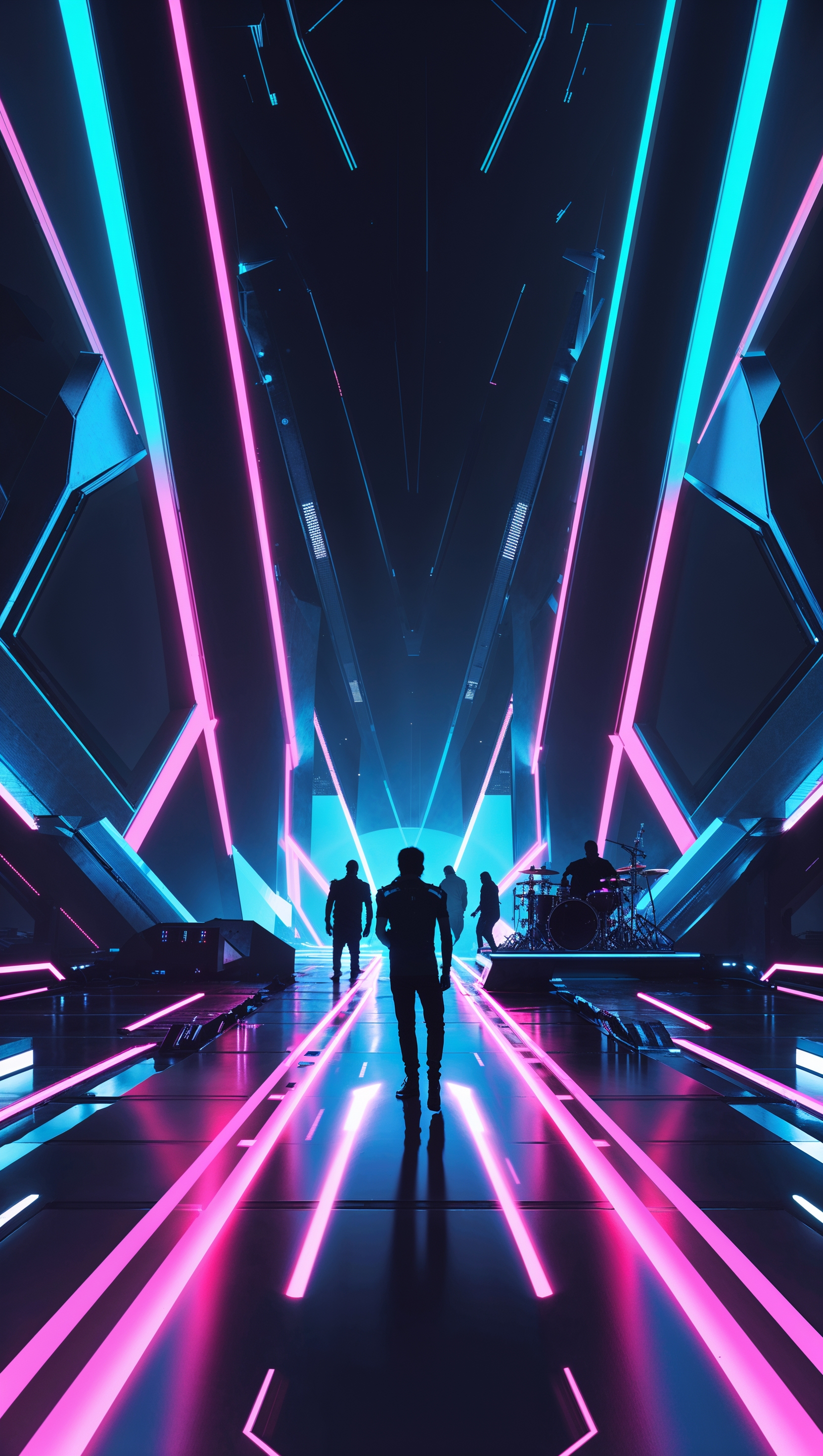 1664x2944 Futuristic Korn stage with glowing neon lights, iPhone wallpaper