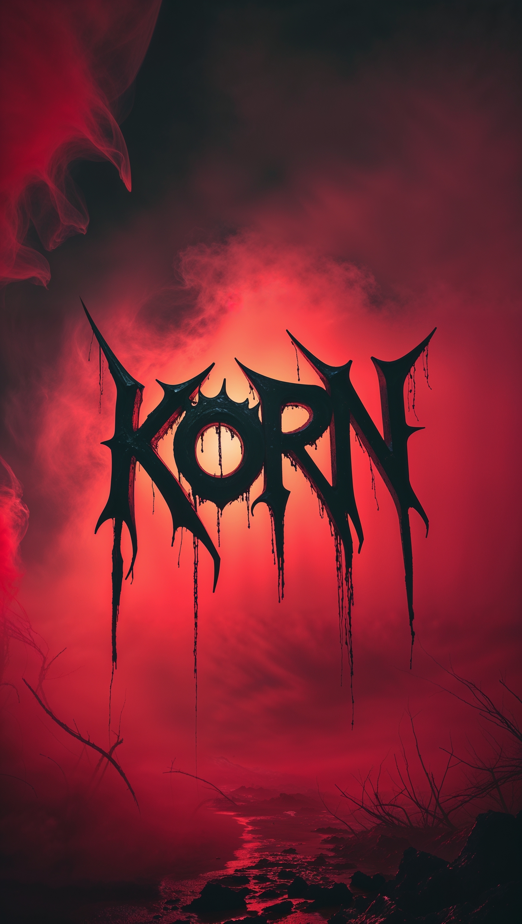 1664x2944 Red fog with floating Korn logo, horror aesthetic, iPhone wallpaper