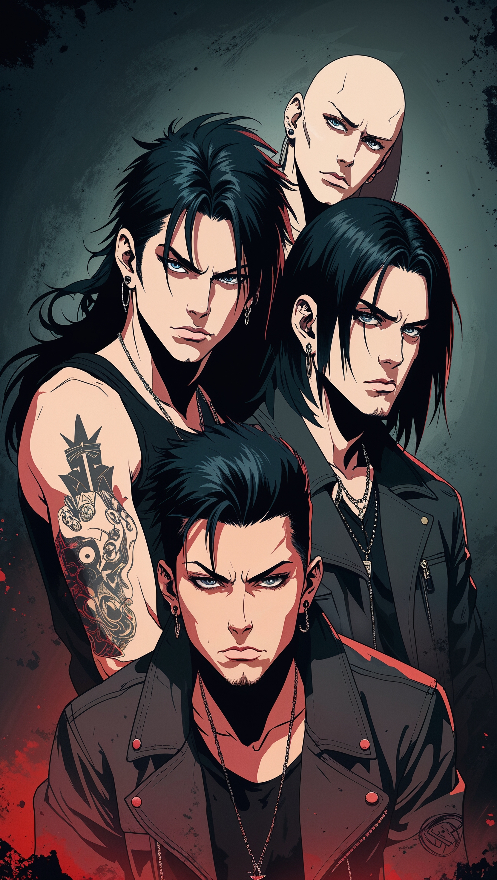 1664x2944 Korn members in anime style, dark tone, iPhone wallpaper