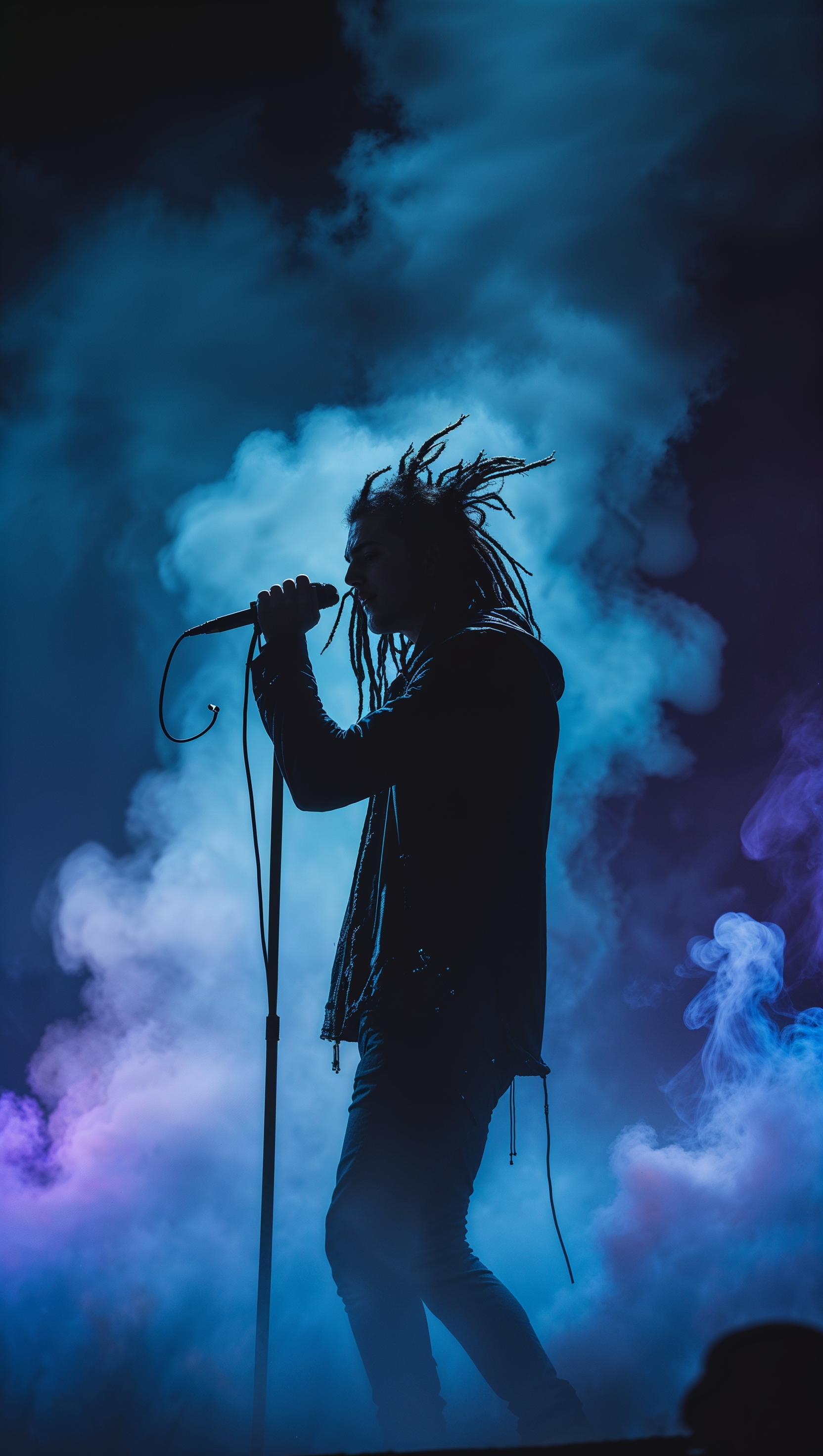 1664x2944 Jonathan Davis silhouette with microphone, smoke background, iPhone wallpaper