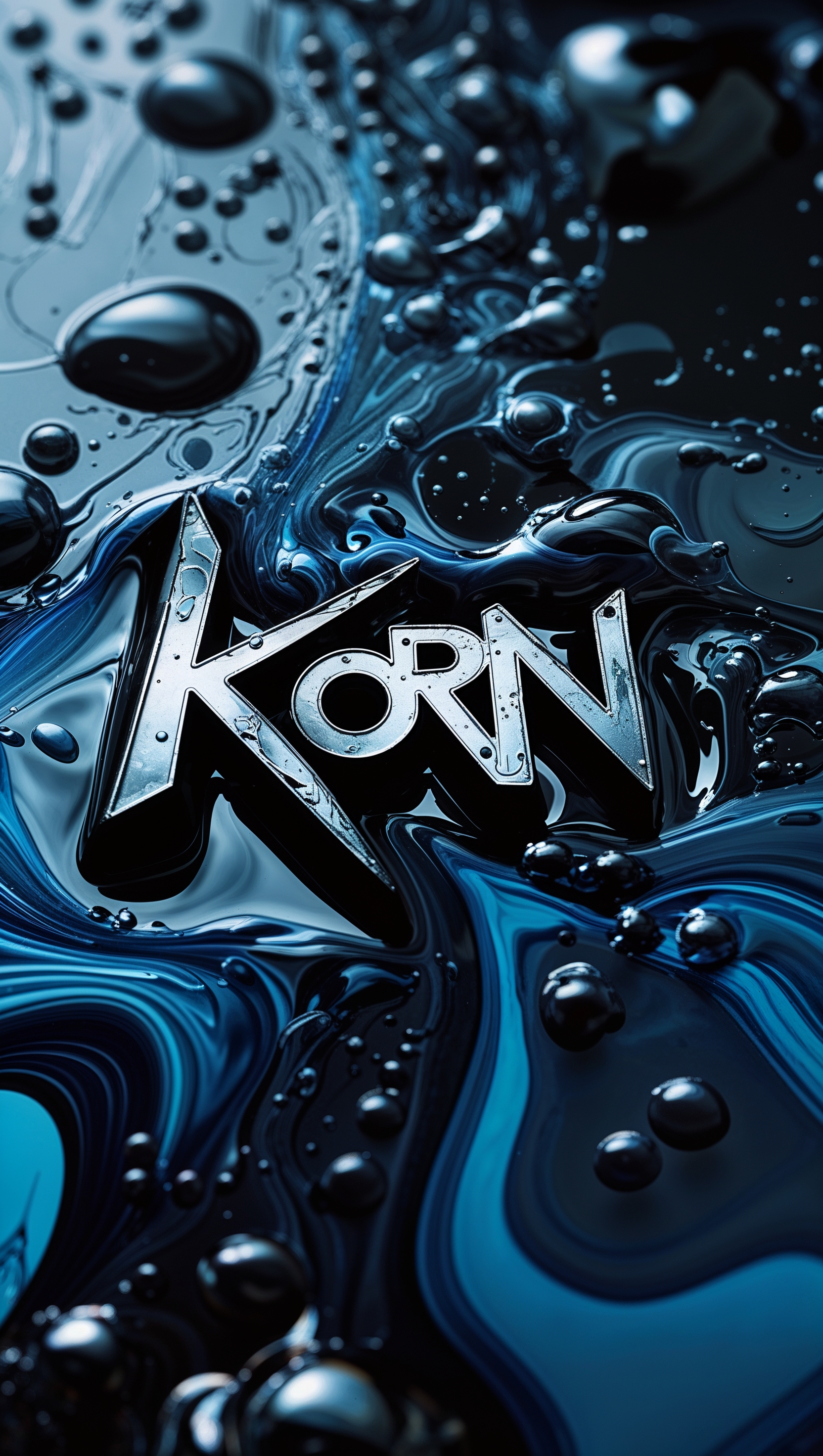 1664x2944 Korn logo submerged in oil and water mix, abstract effect, iPhone wallpaper