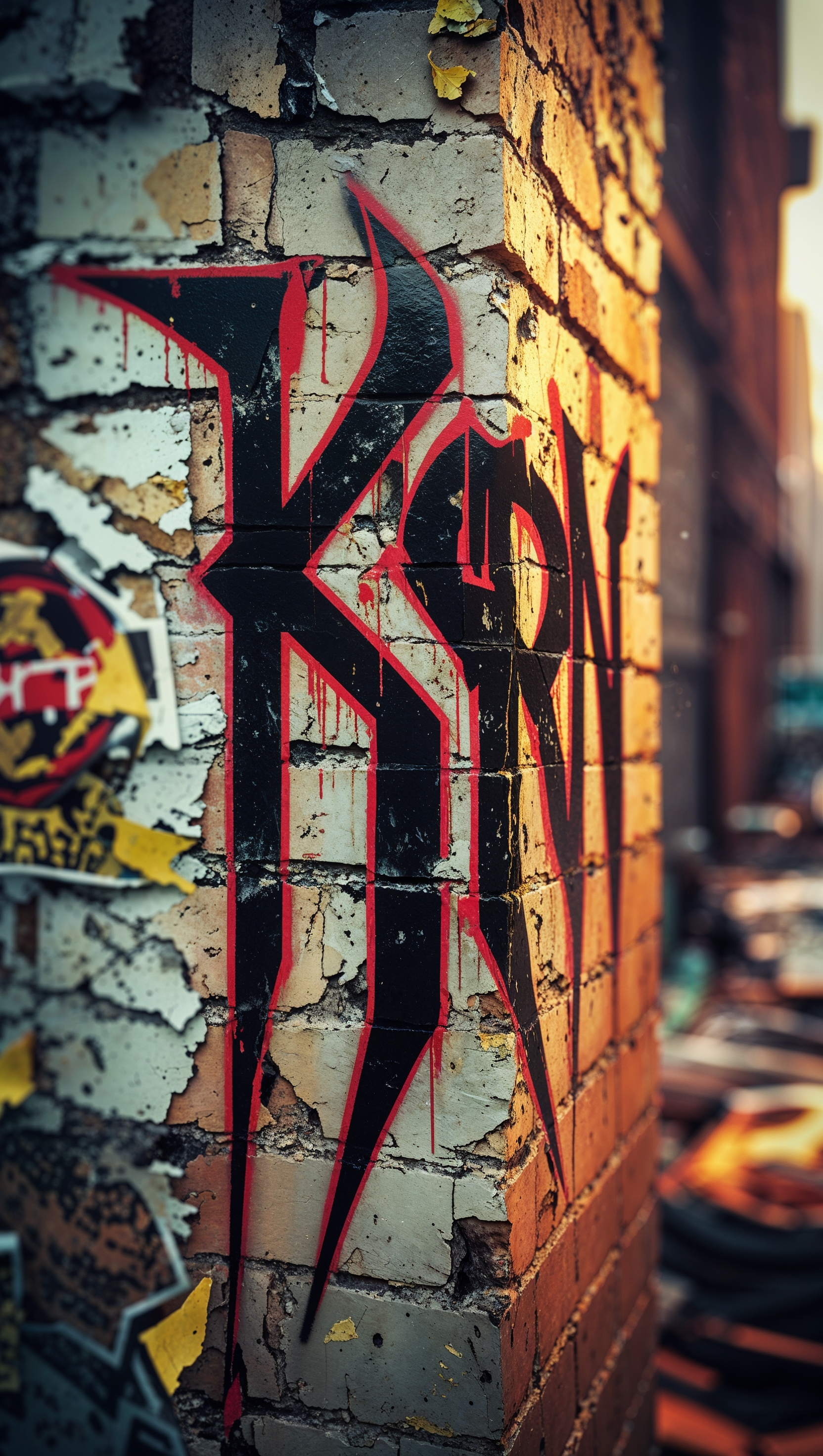 1664x2944 Grungy brick wall with spray-painted Korn graffiti, iPhone wallpaper