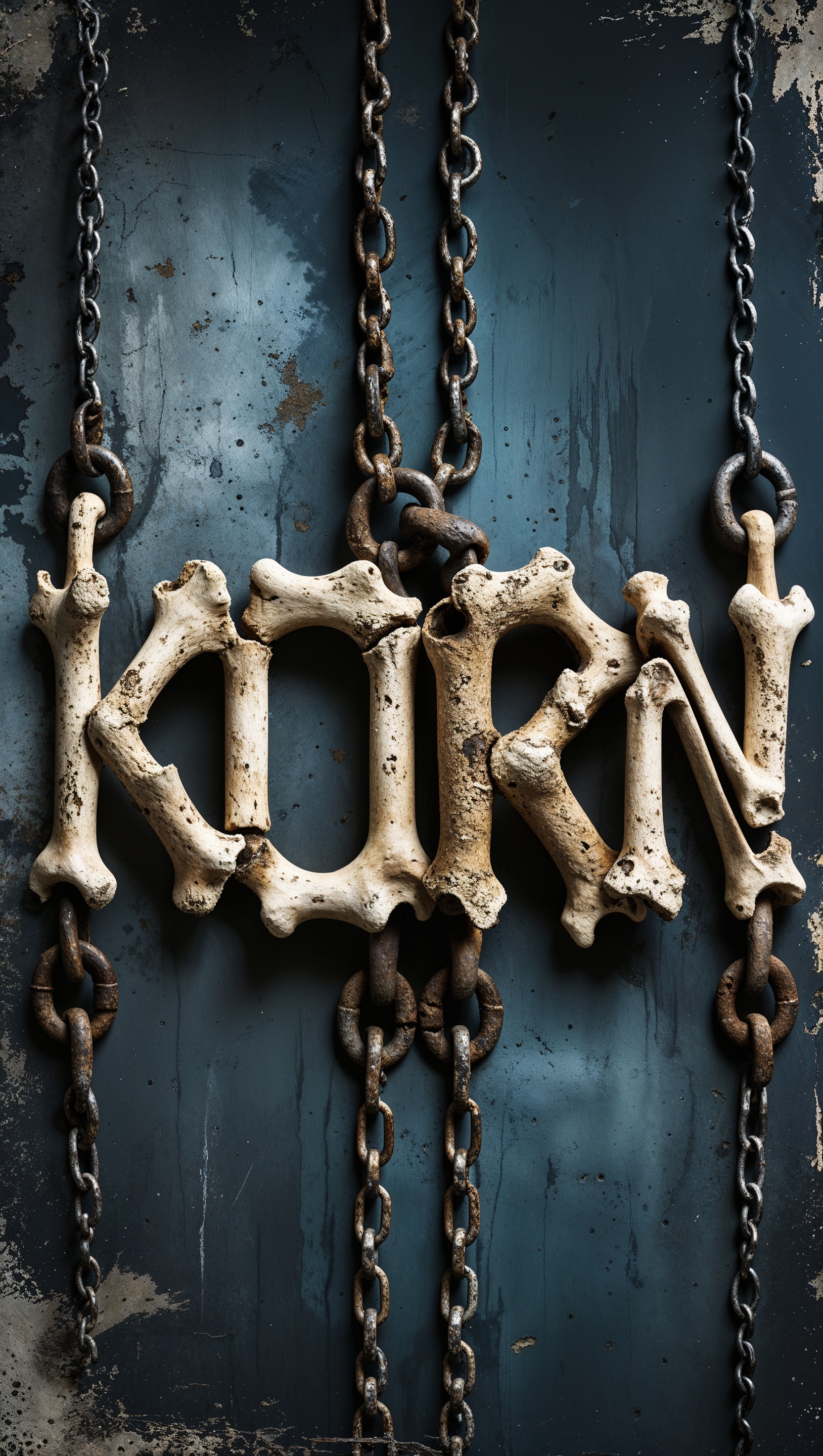 1664x2944 Korn name made of bones and chains, industrial style, iPhone wallpaper