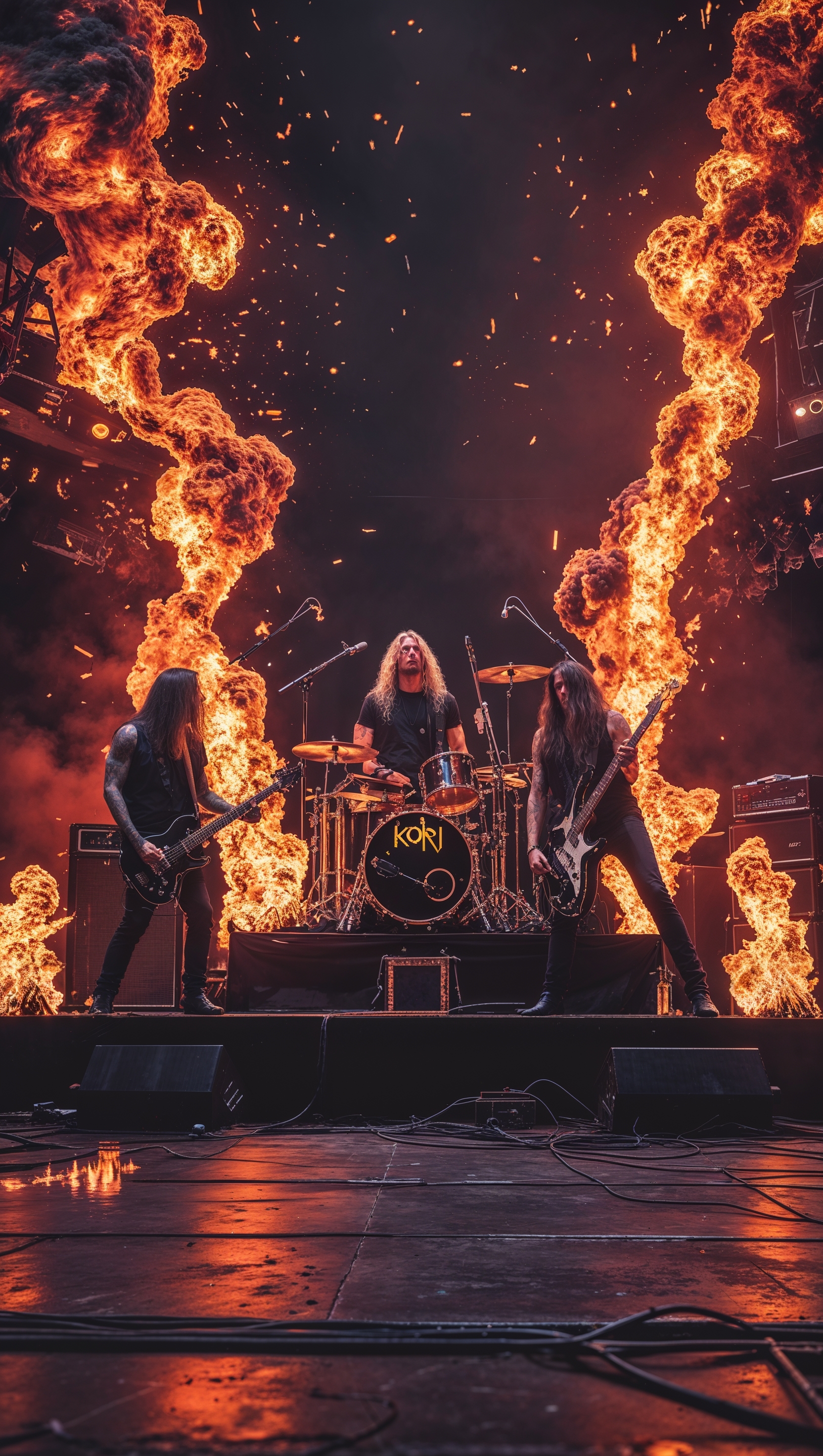 1664x2944 Korn stage exploding with fire and sparks, cinematic shot, iPhone wallpaper