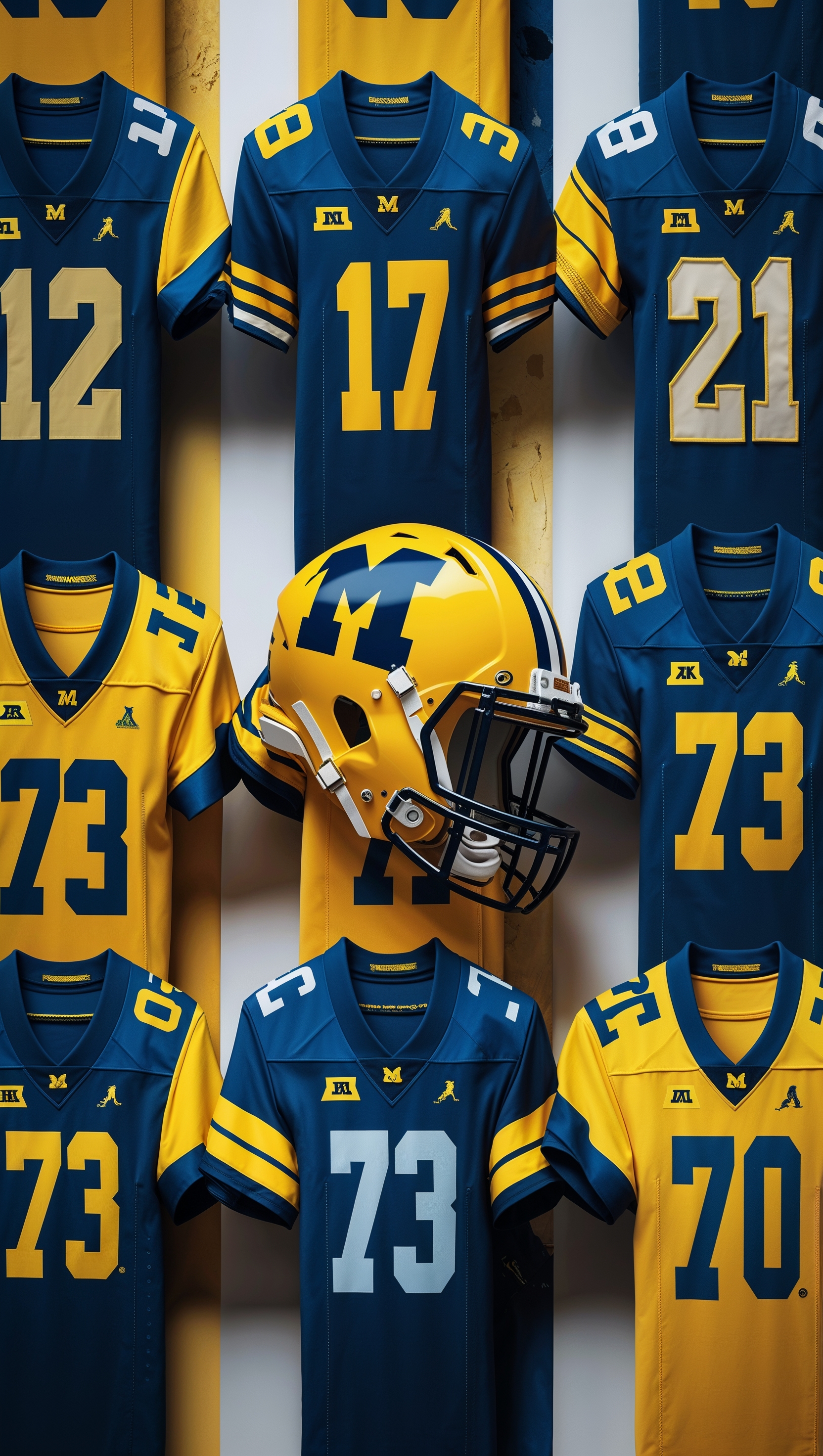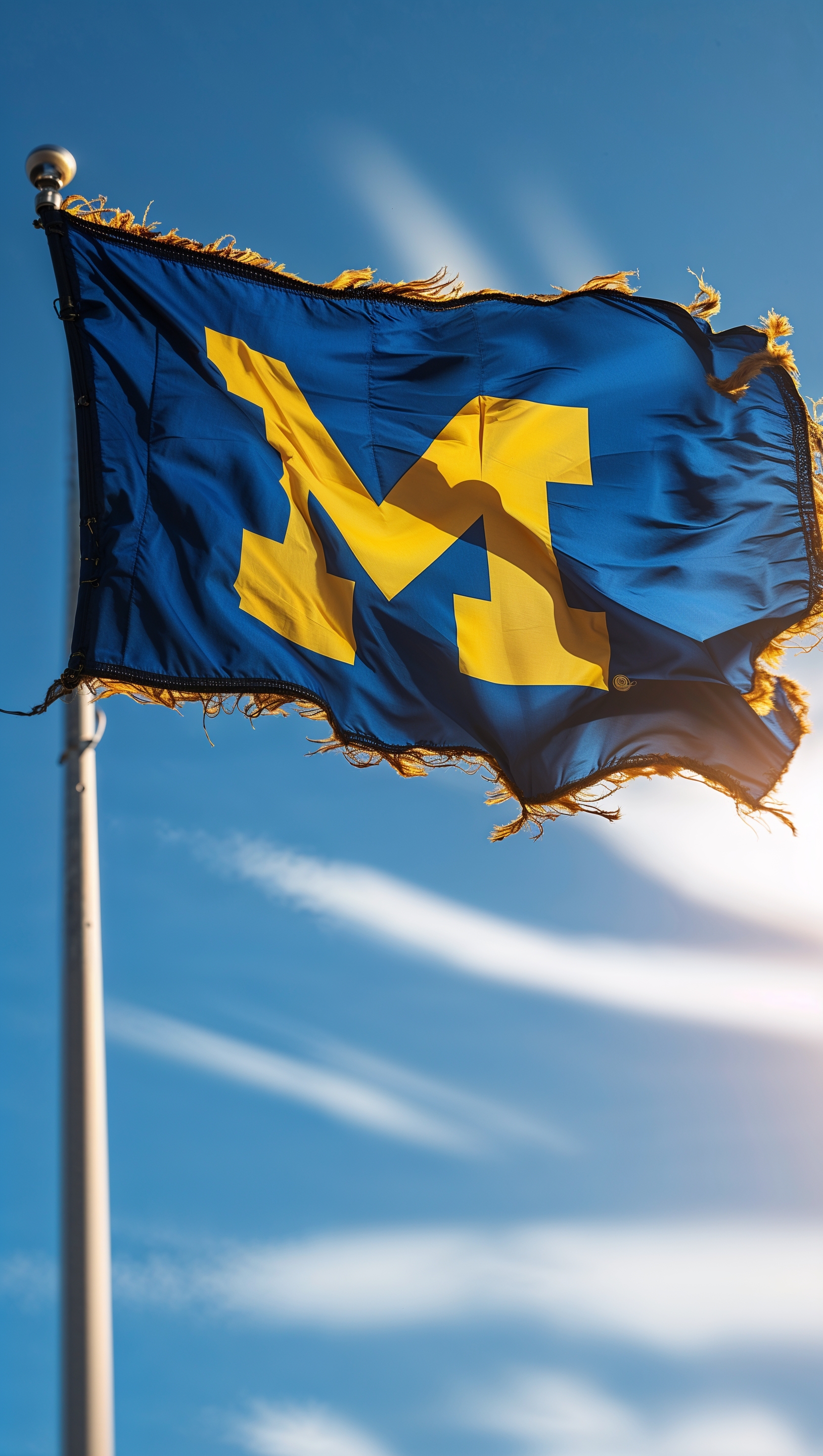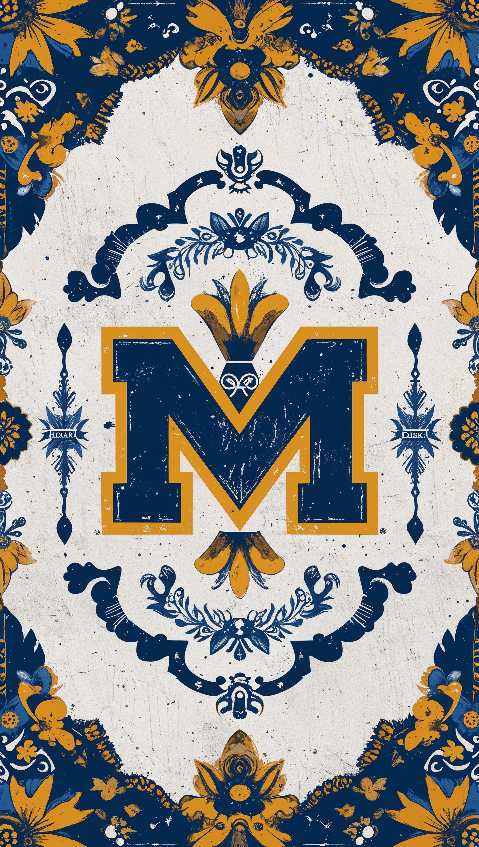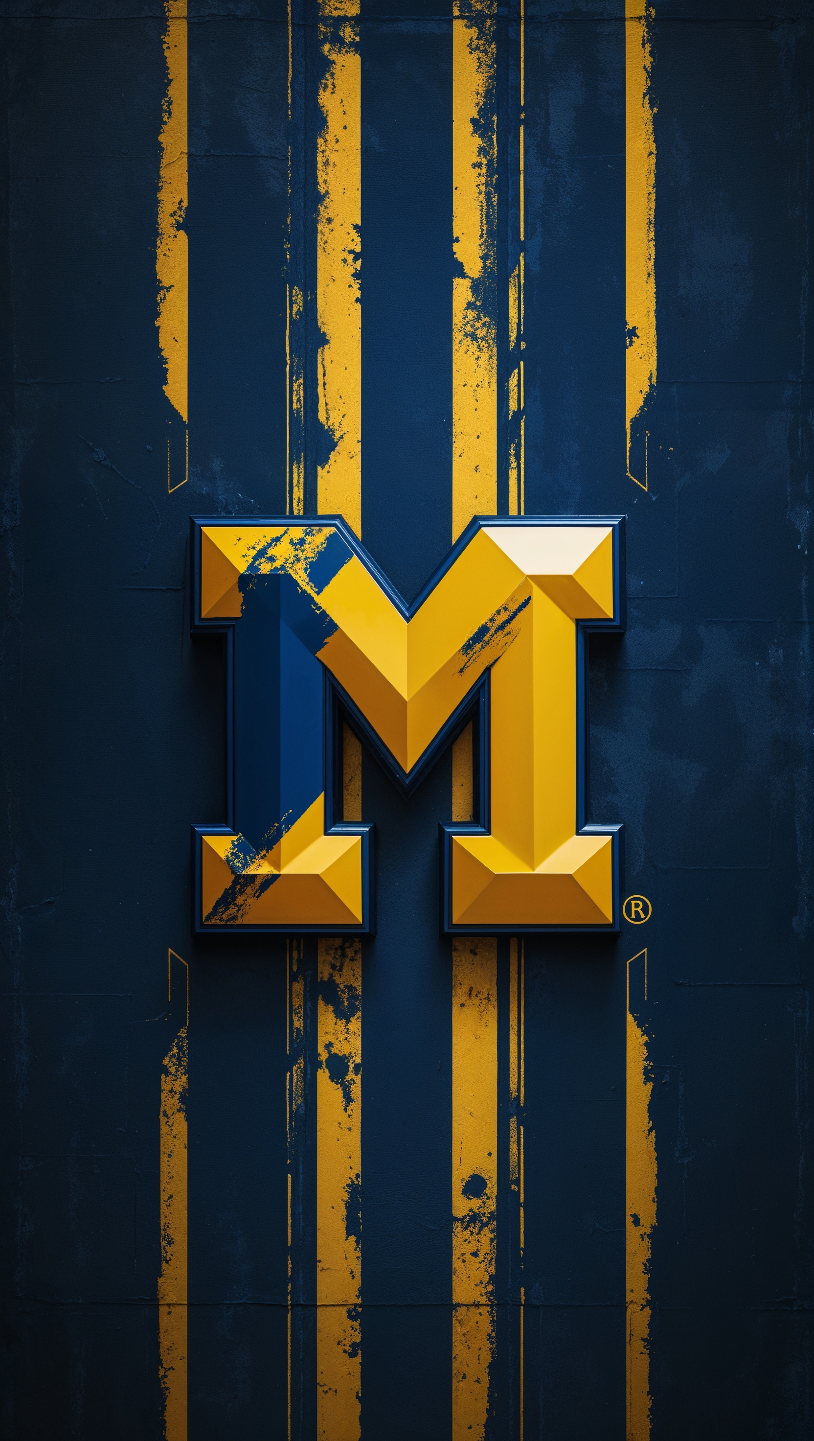 1664x2944 An image of Michigan football team logo with a dark background and yellow and blue stripes
