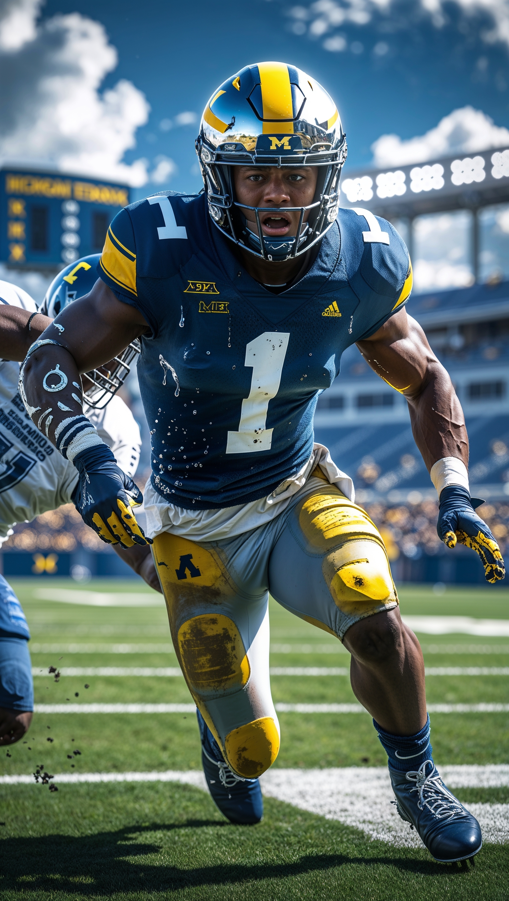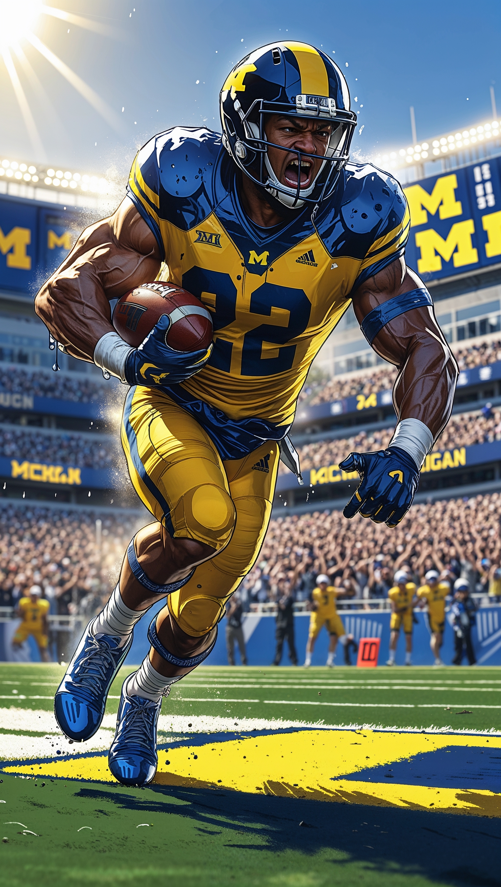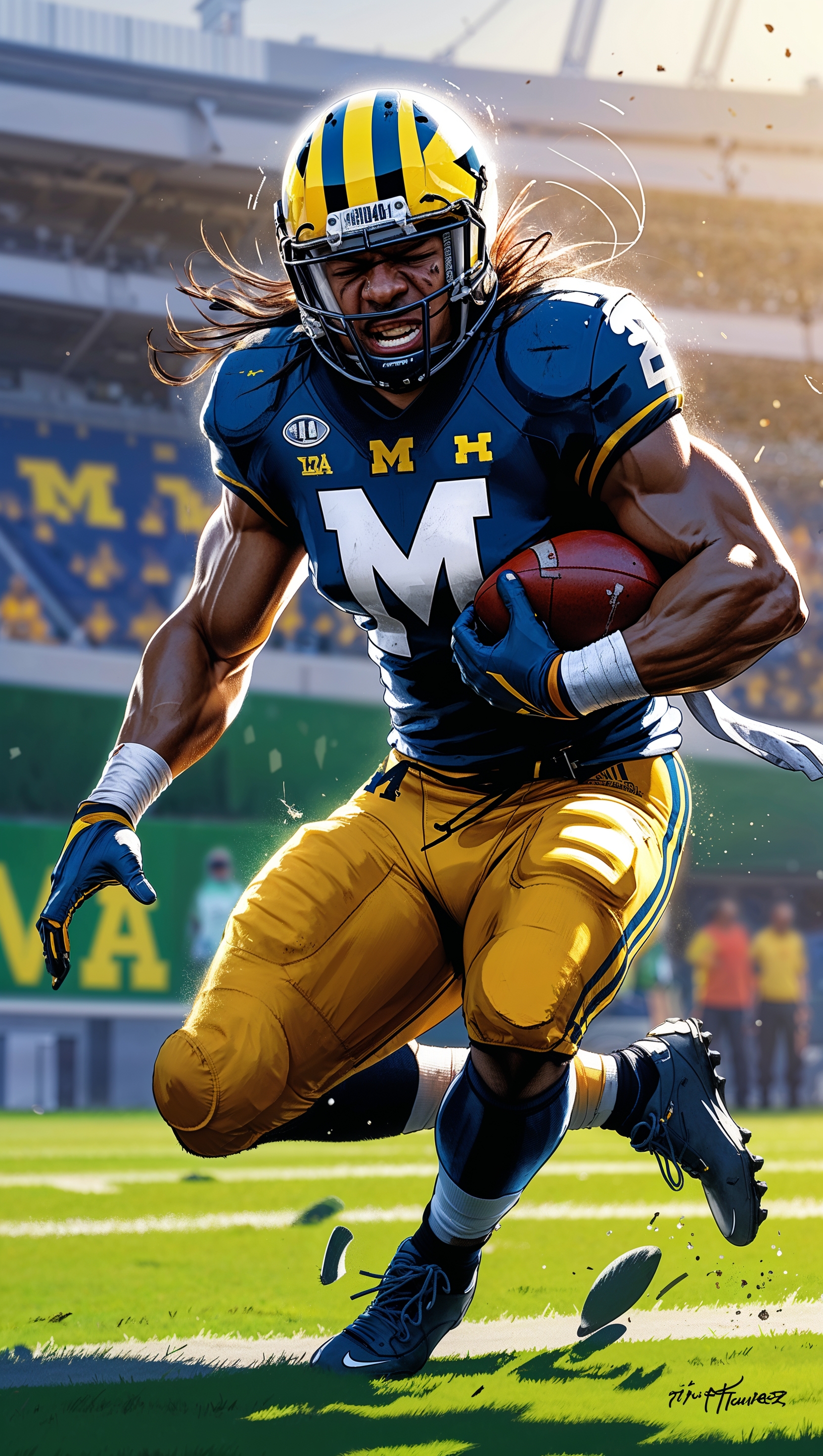 1664x2944 A close-up of a Michigan football player running with the ball in hand