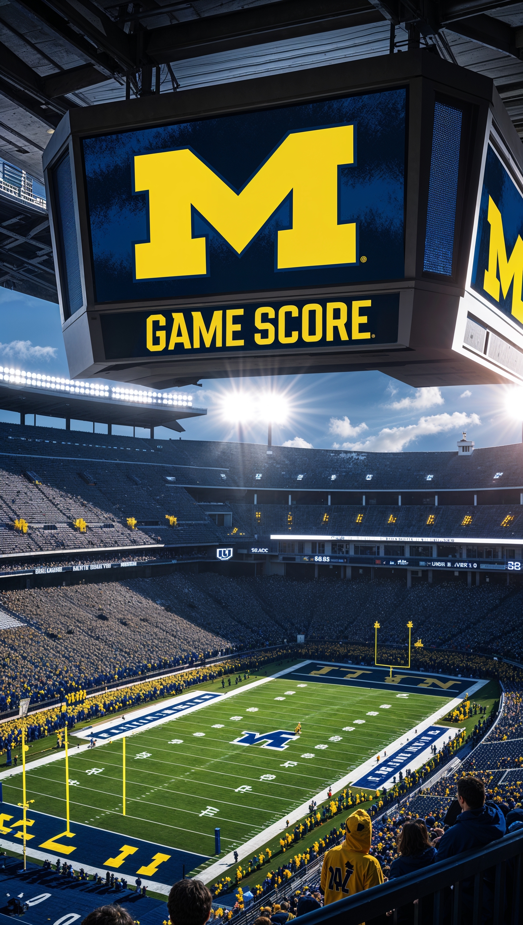 1664x2944 An image of a large scoreboard at Michigan stadium with the game score