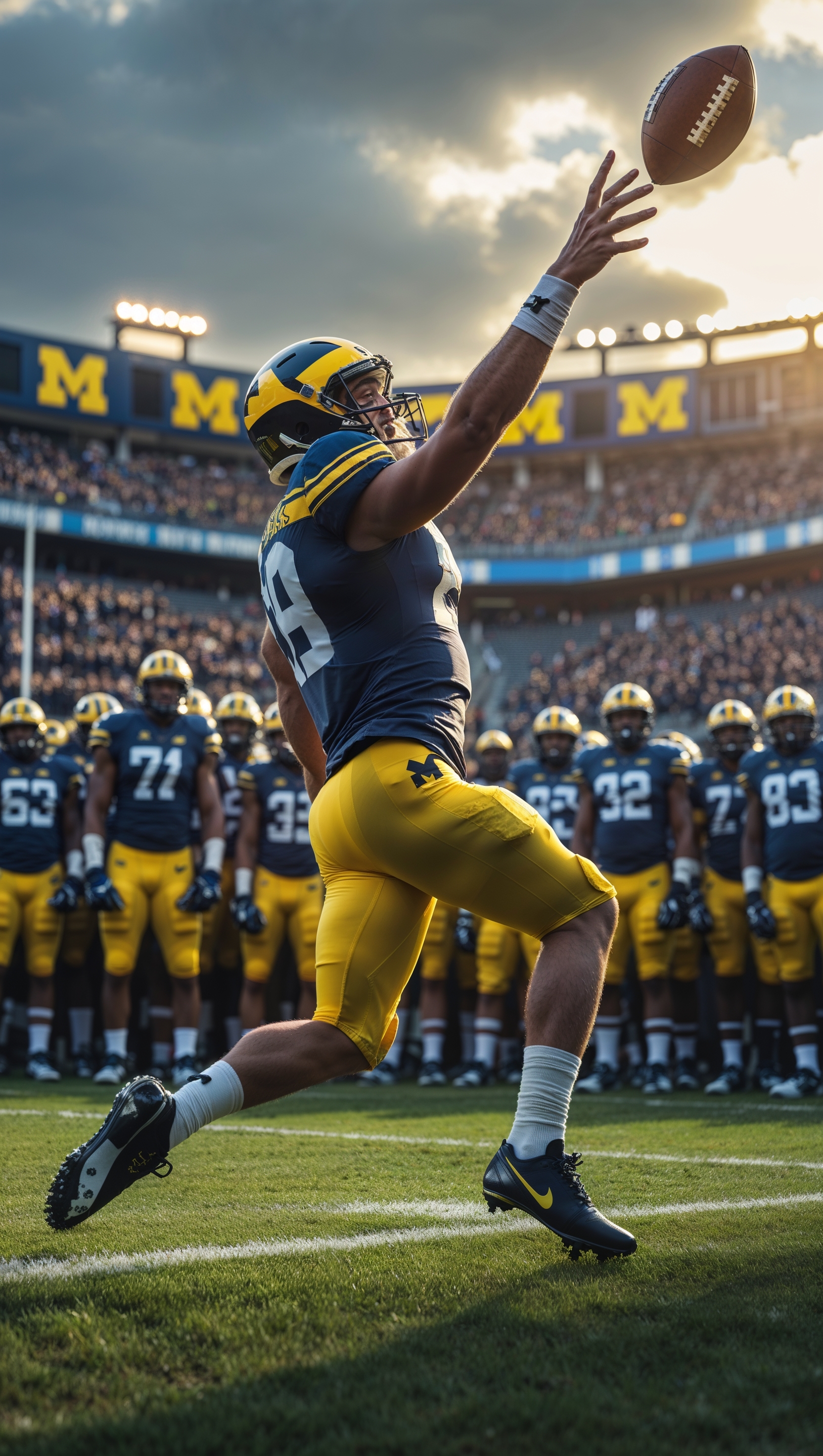 1664x2944 An image of a crucial moment with a final kick in a Michigan football game