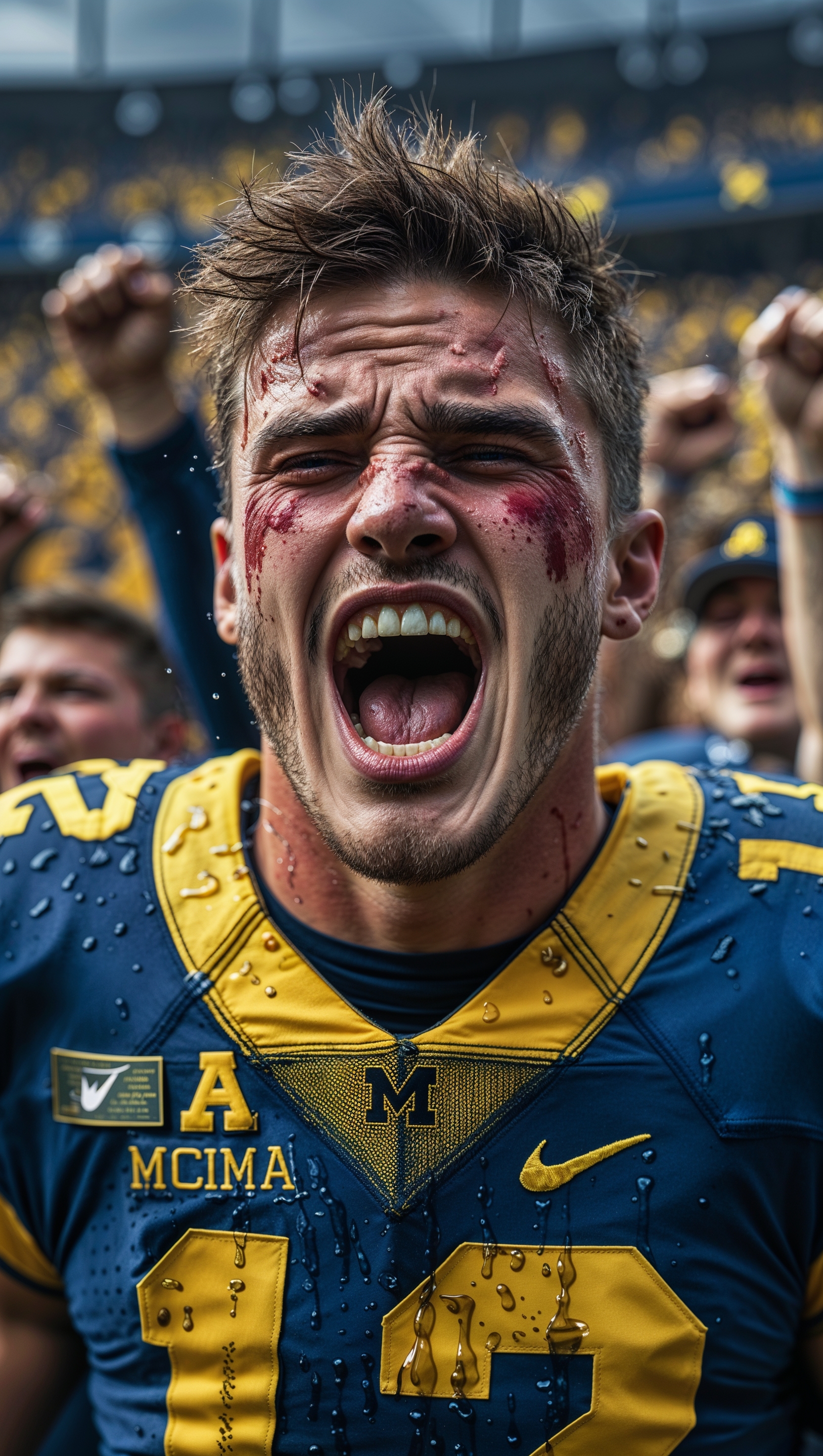 1664x2944 An image of a Michigan football player shouting in support of the team