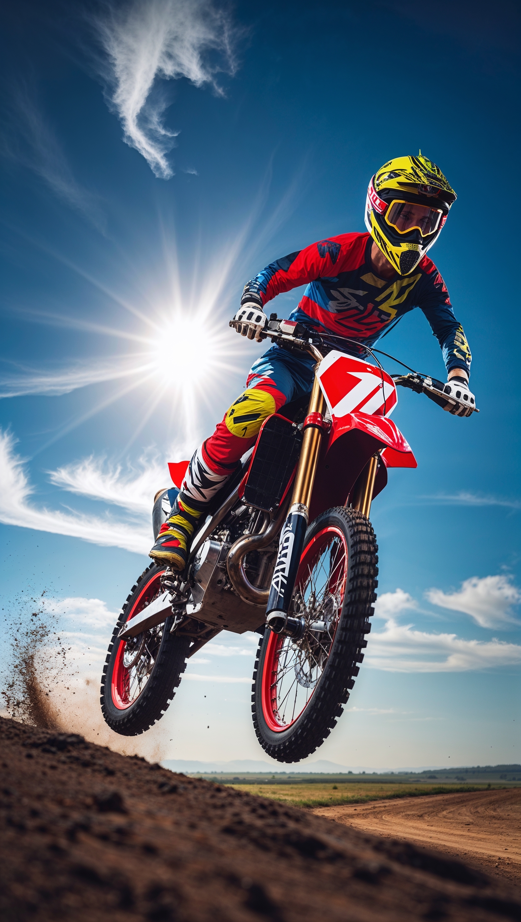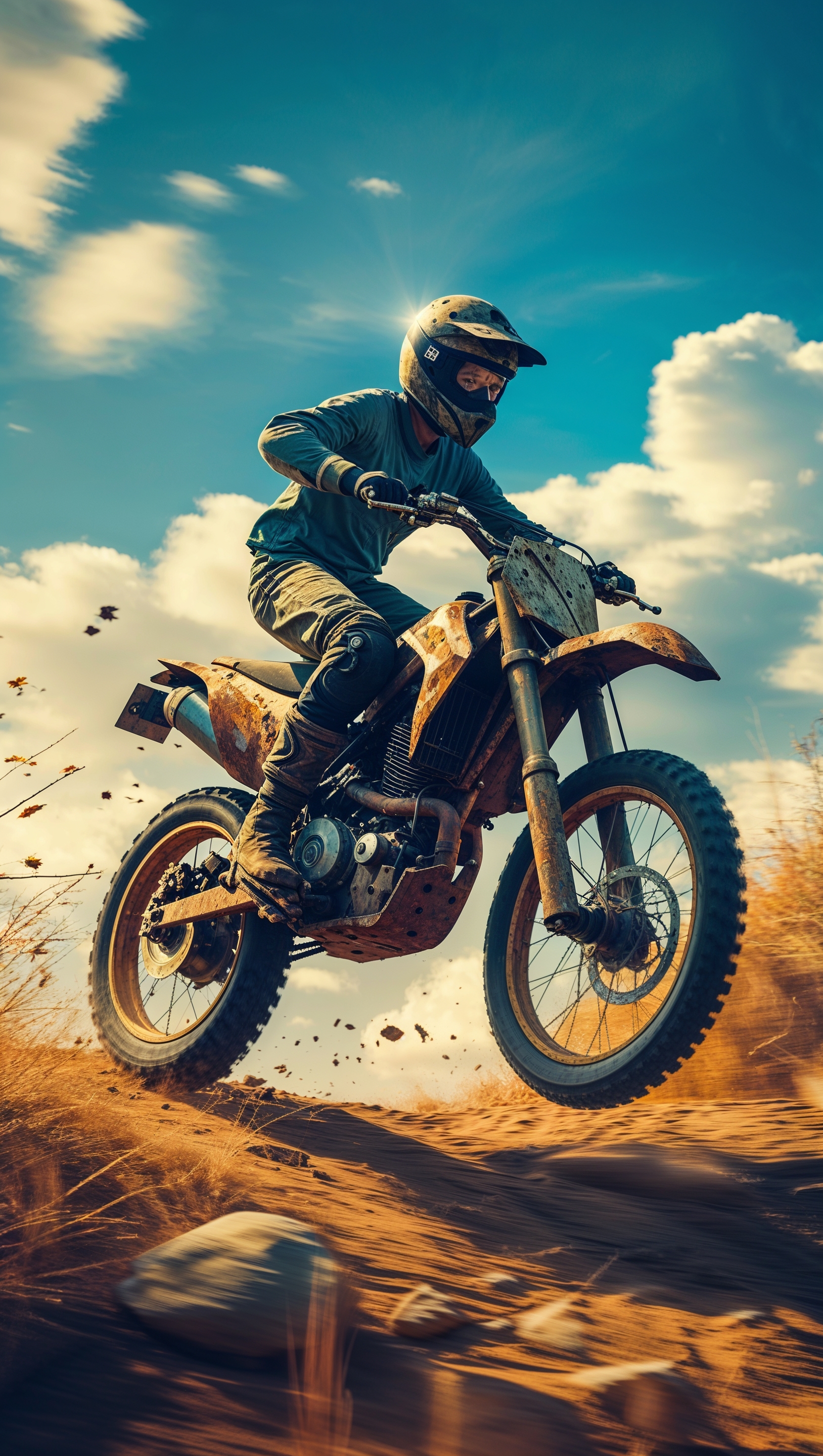 1664x2944 A dirt bike jumping in the open with morning light, for an iPhone wallpaper