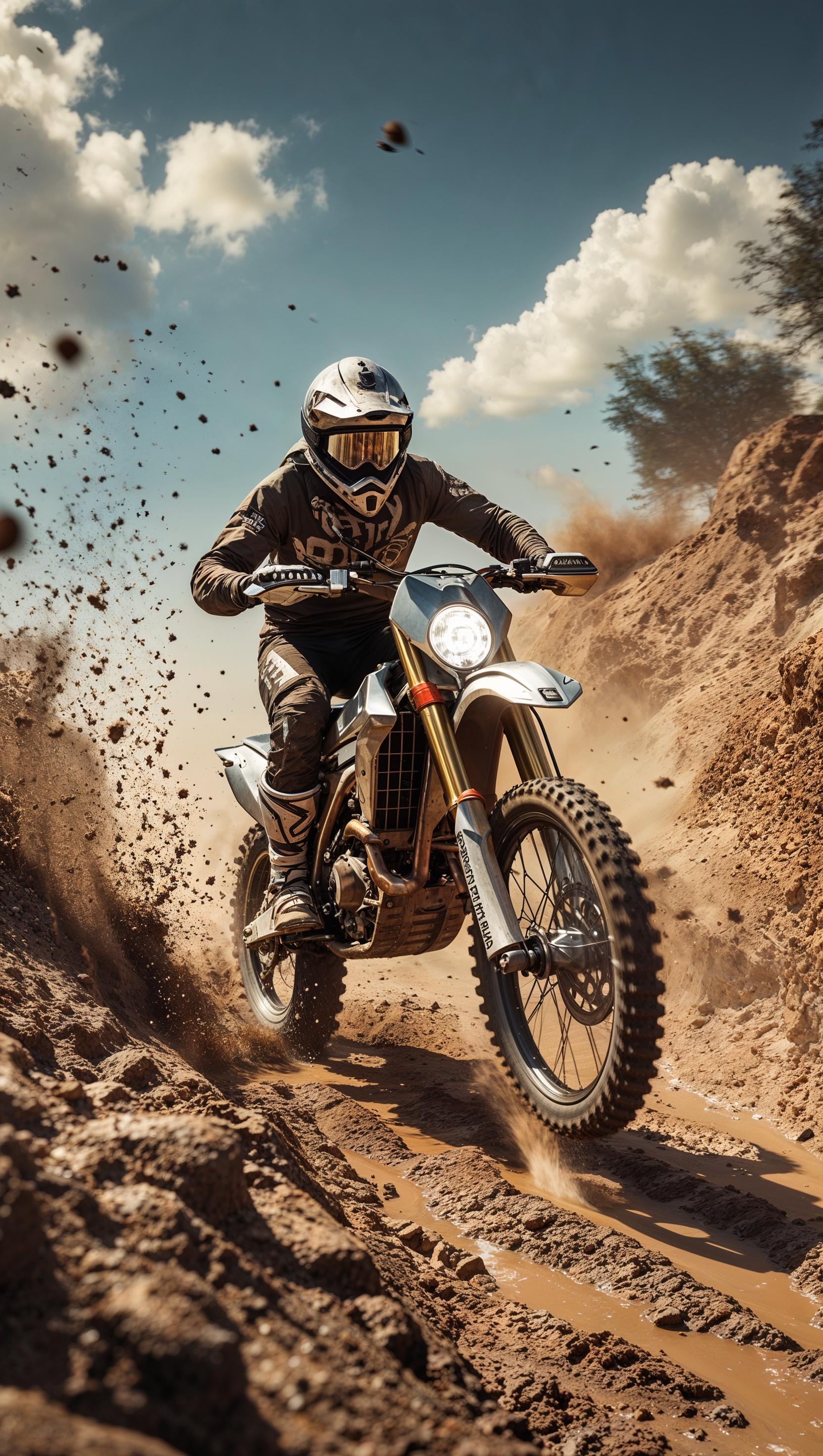1664x2944 A dirt bike riding through a muddy road, for an iPhone wallpaper