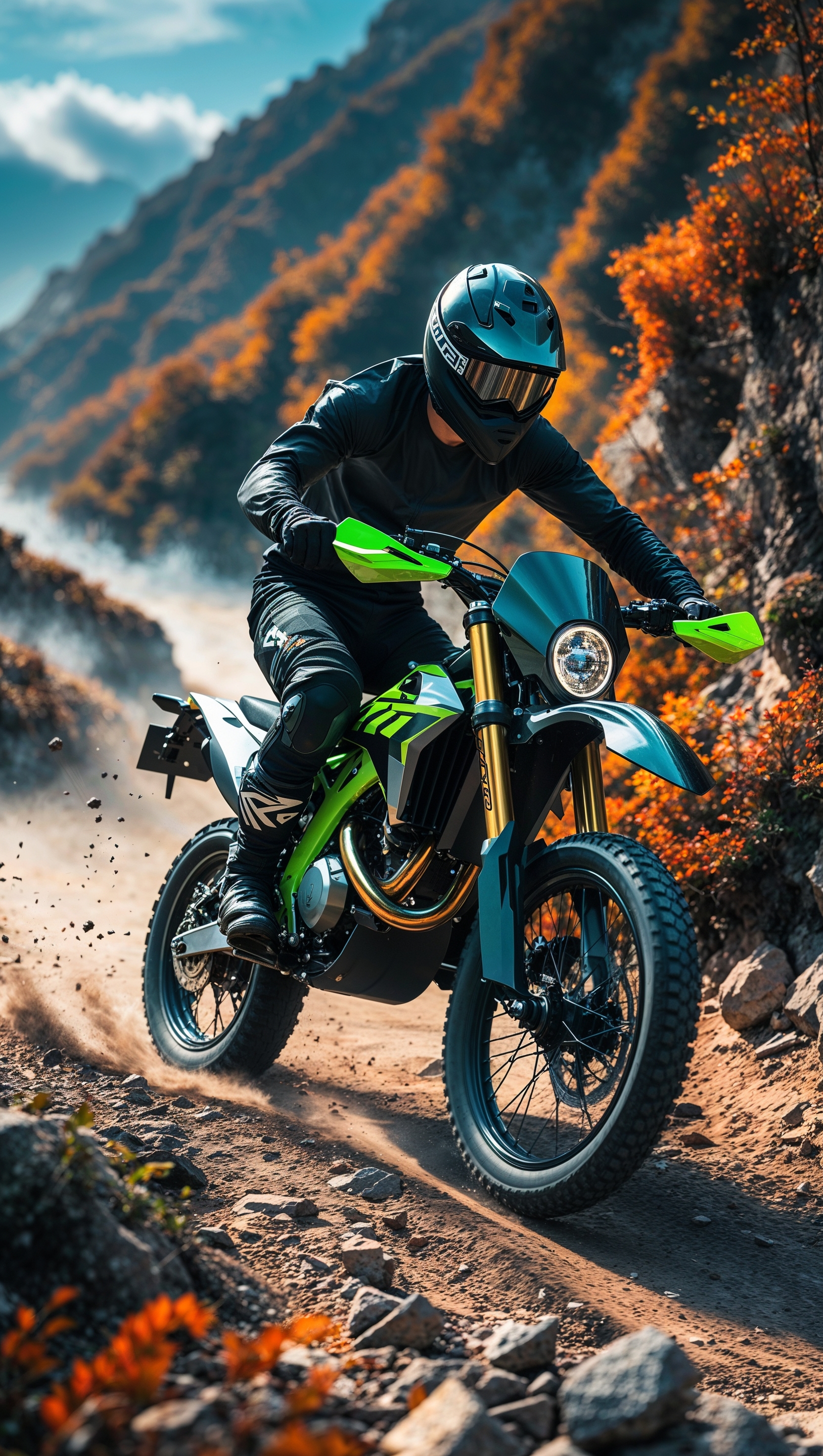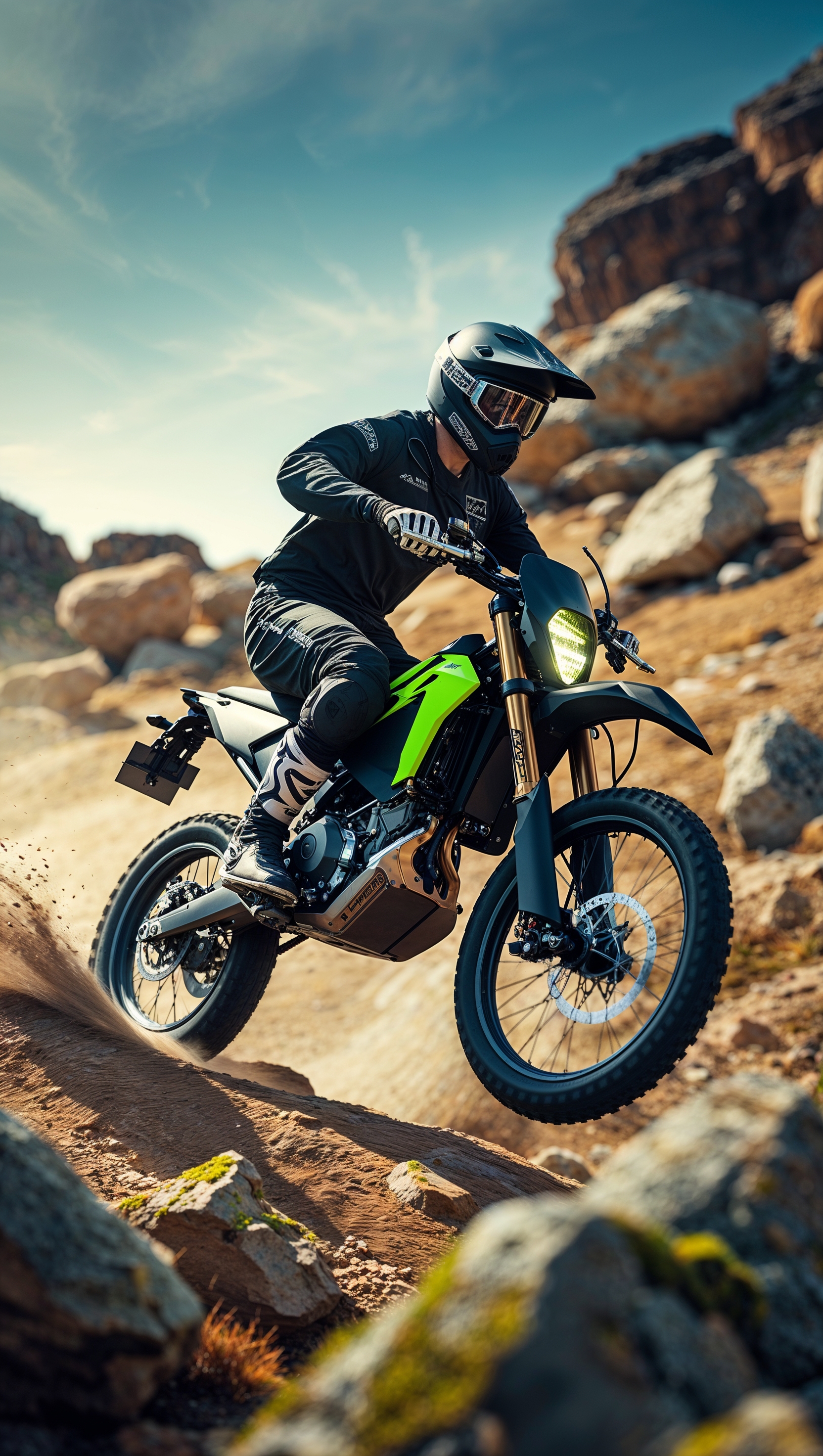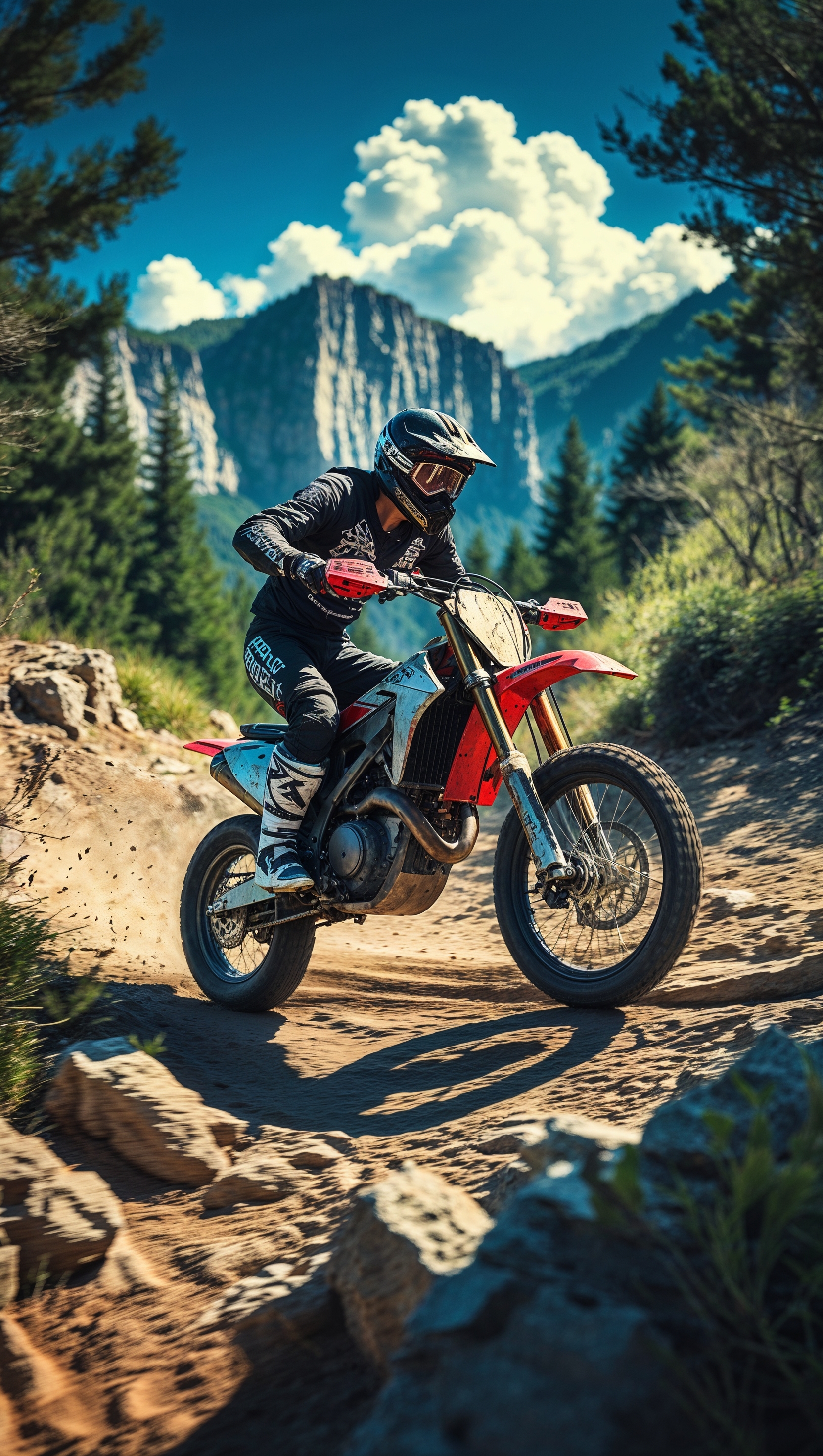 1664x2944 A dirt bike riding on a rugged mountain trail, for an iPhone wallpaper