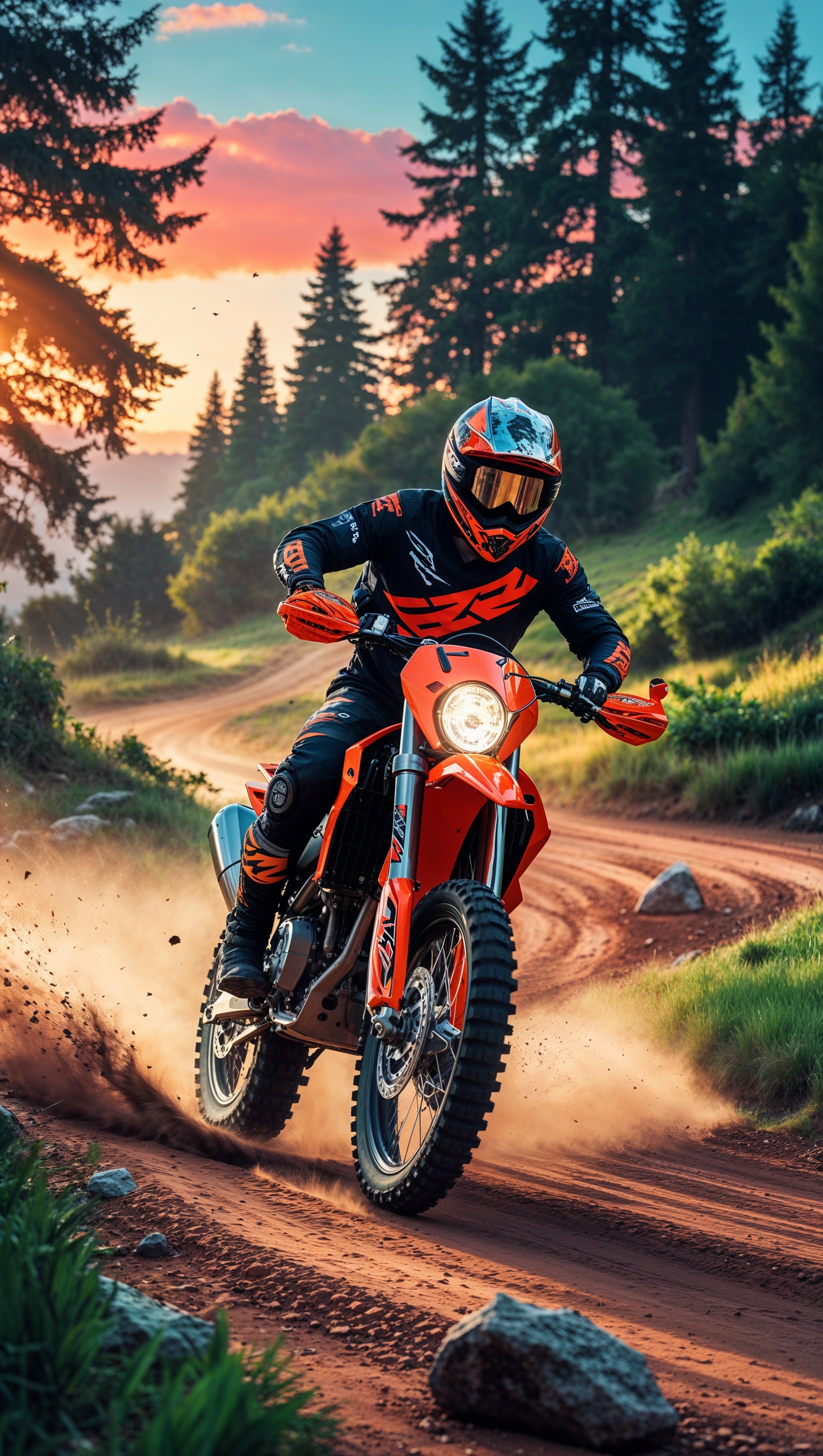 1664x2944 A dirt bike riding on a dirt road with sunset lighting, for an iPhone wallpaper