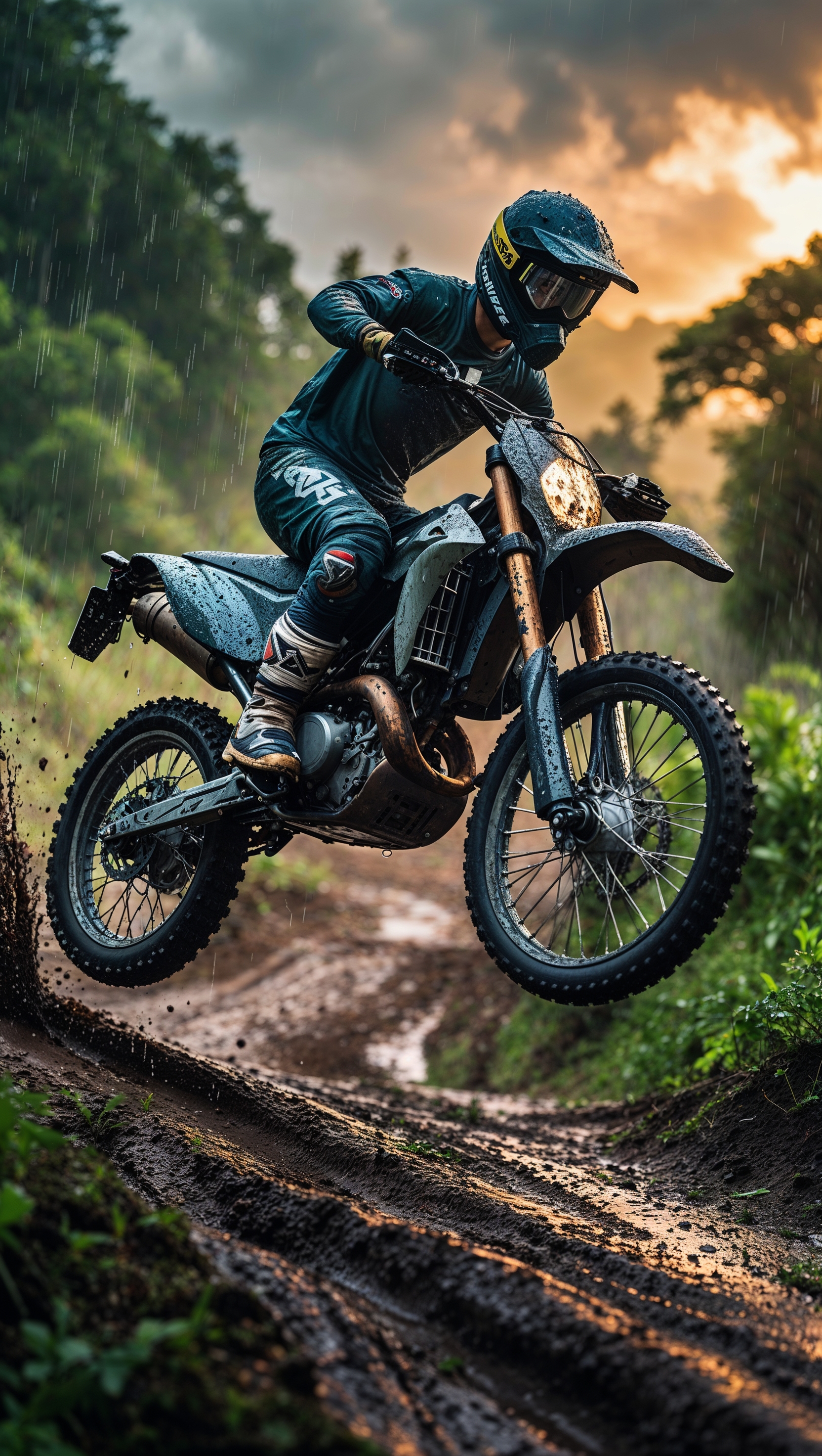 1664x2944 A dirt bike riding on a wet trail after the rain, for an iPhone wallpaper