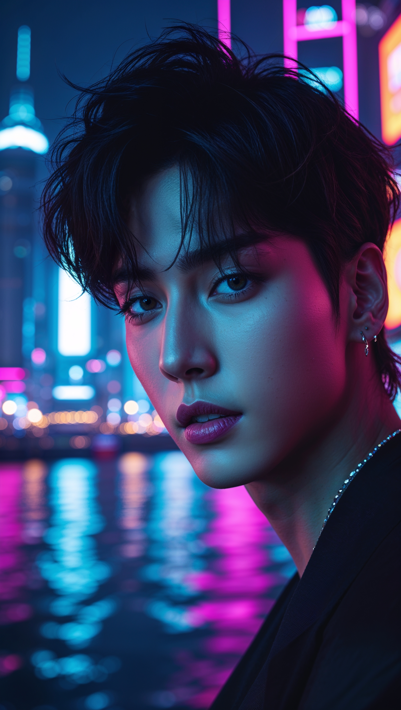 1664x2944 Design an iPhone wallpaper with Jungkook and neon lights