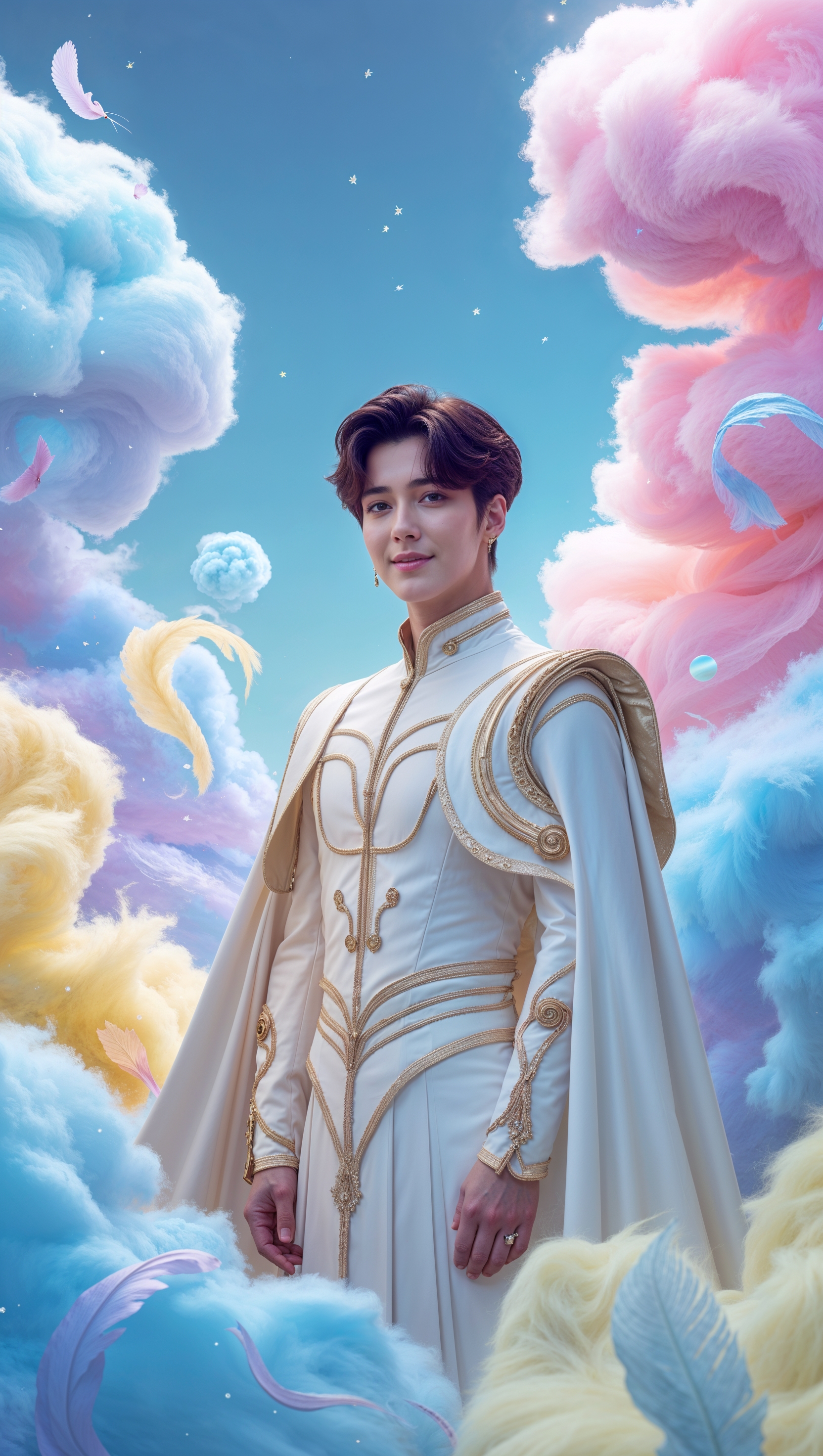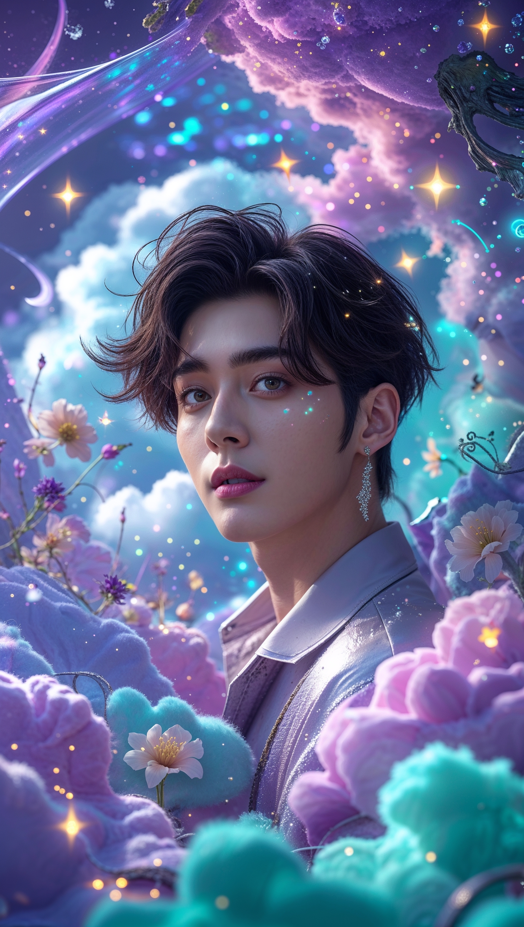 1664x2944 Create an image of Jungkook in a fantasy environment with colorful clouds