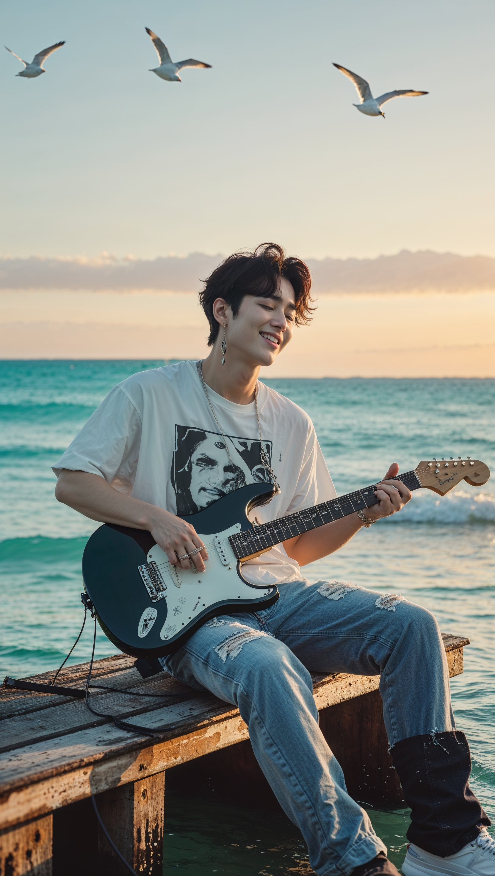 1664x2944 Create a wallpaper with Jungkook by a golden beach
