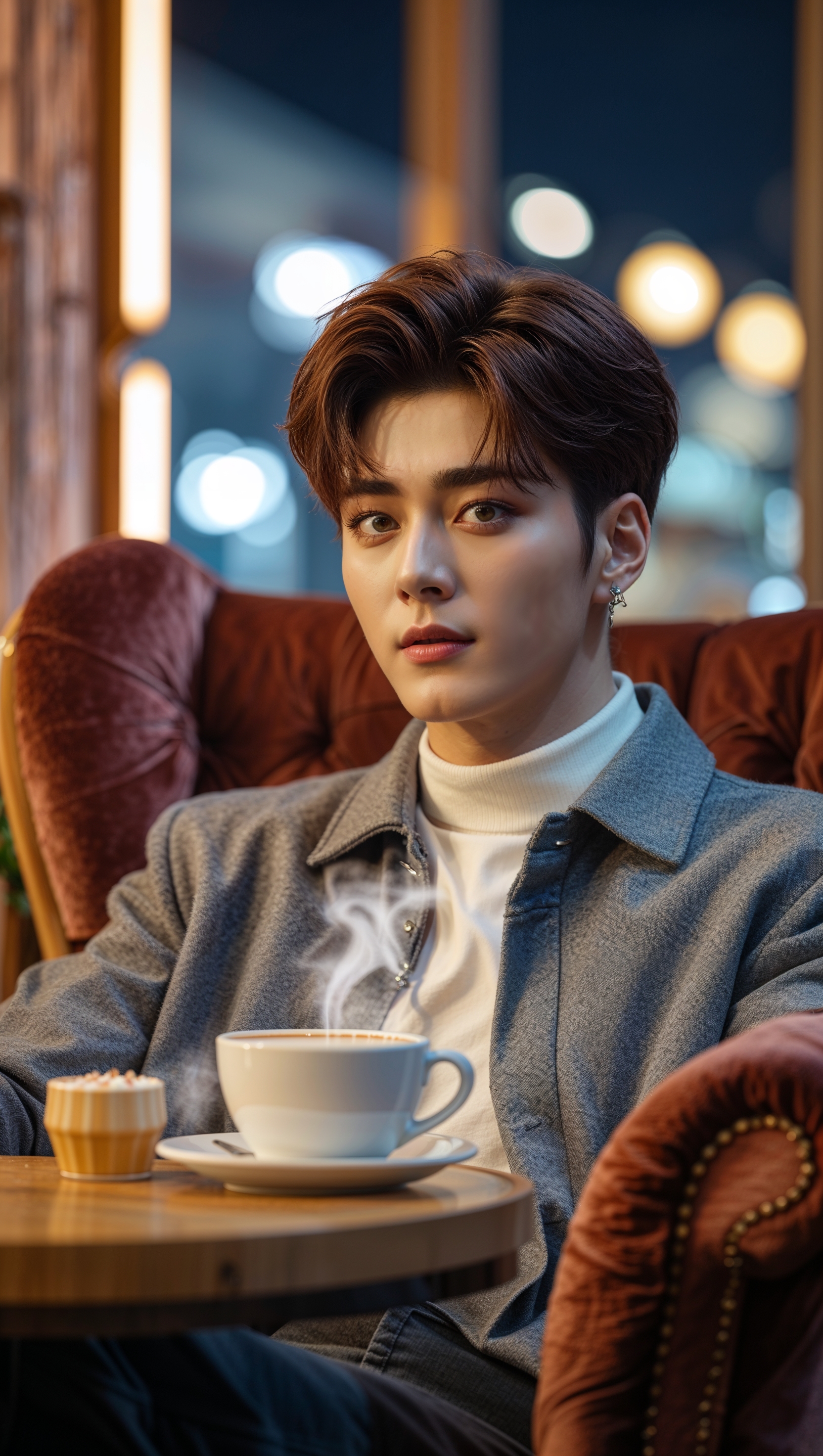 1664x2944 An image of Jungkook in a cozy cafe at night