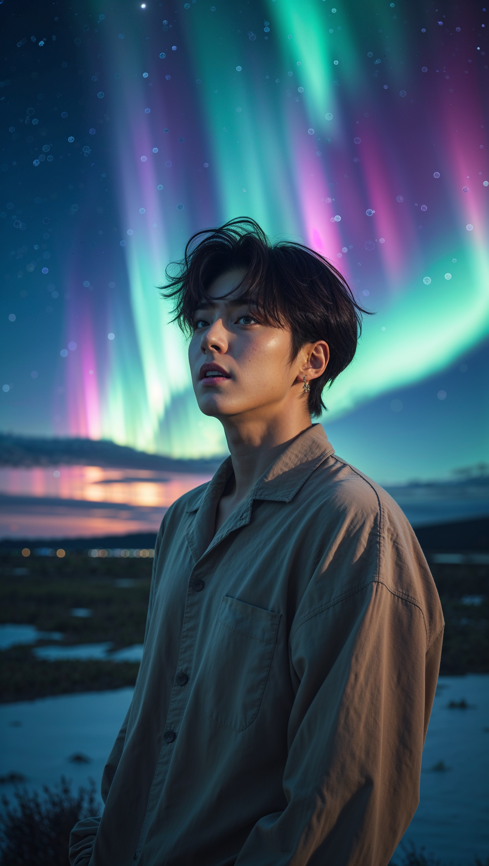 1664x2944 An image of Jungkook next to the Northern Lights in the night sky