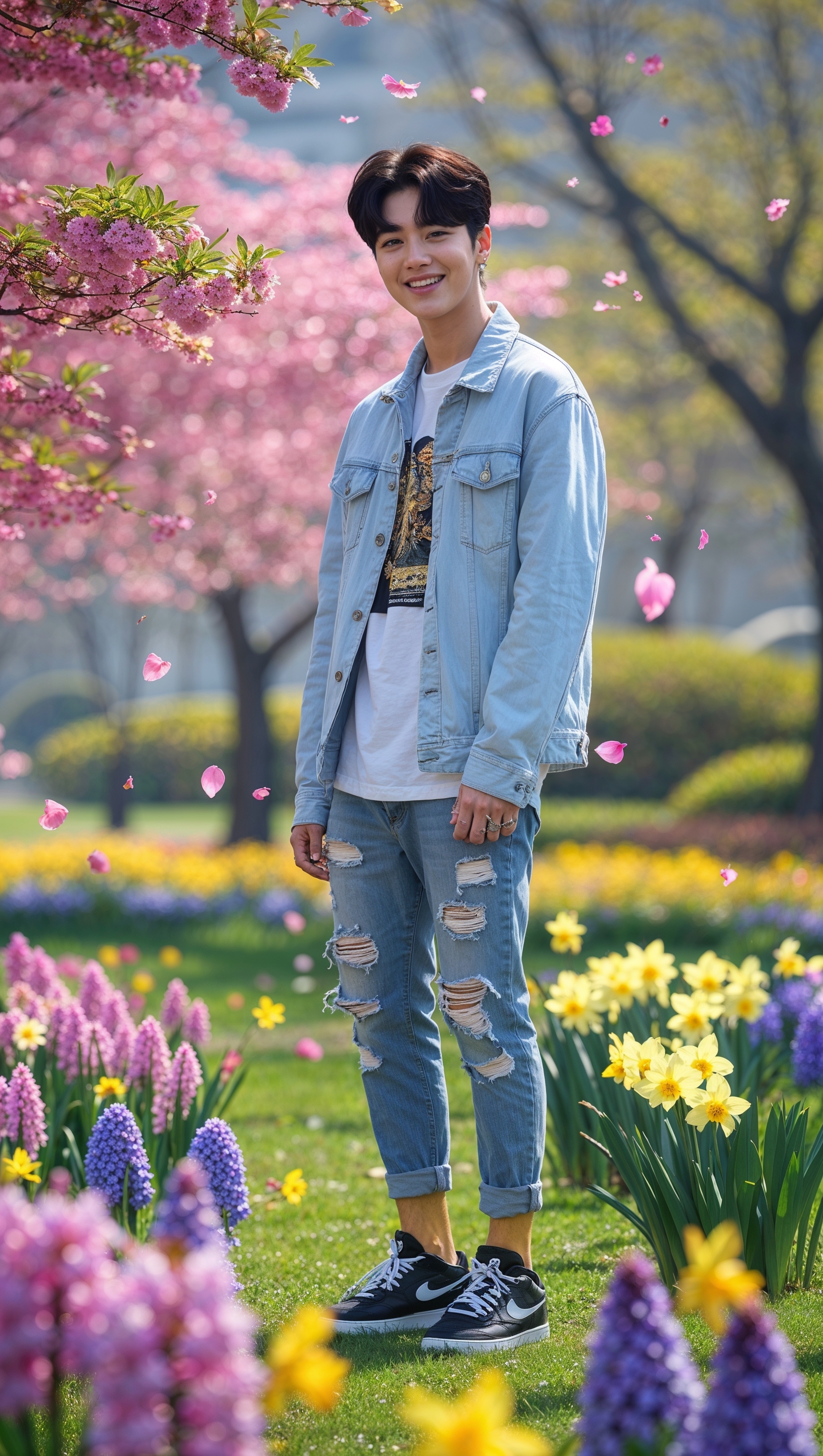 1664x2944 An image of Jungkook in a park with beautiful flowers