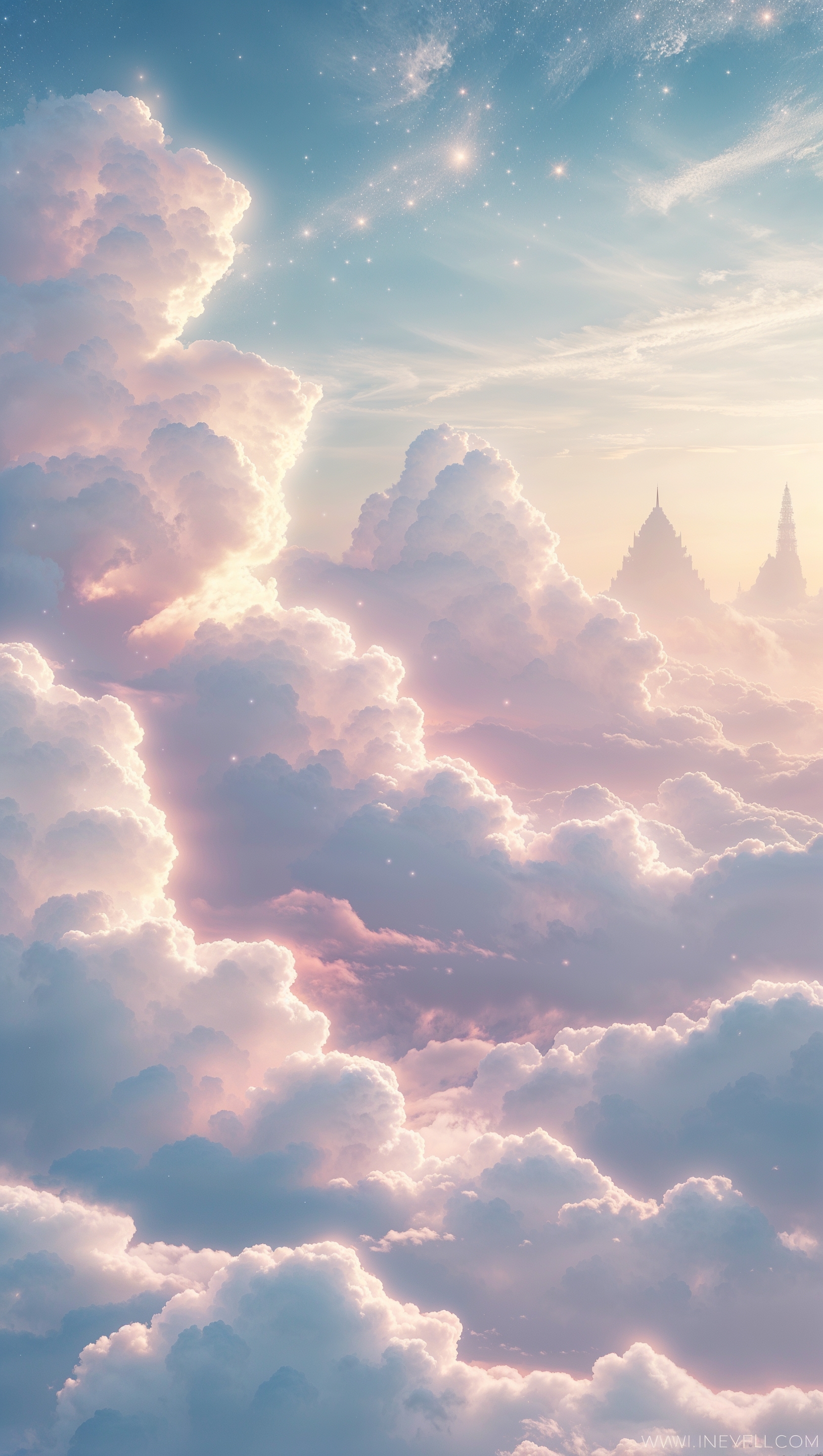 1664x2944 Heavenly realm with glowing clouds and ethereal light – nirvana inspired background