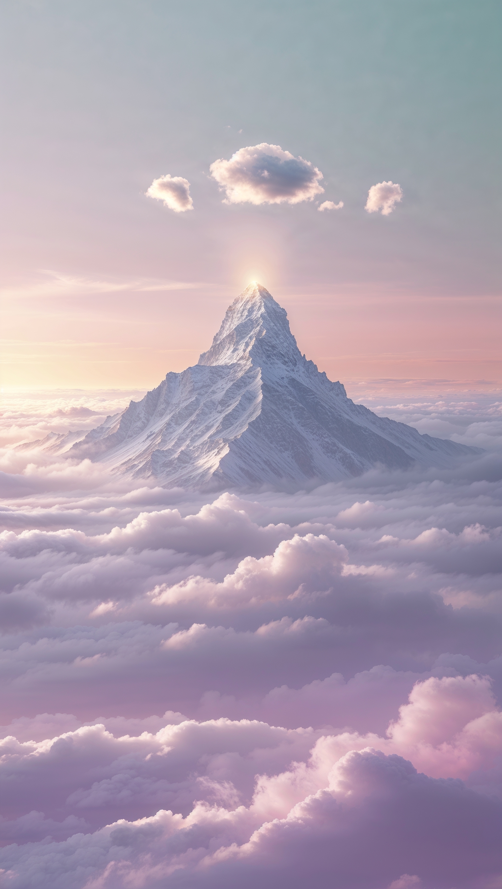1664x2944 A serene mountaintop above the clouds, symbolizing spiritual nirvana, in soft pastel colors – iPhone wallpaper