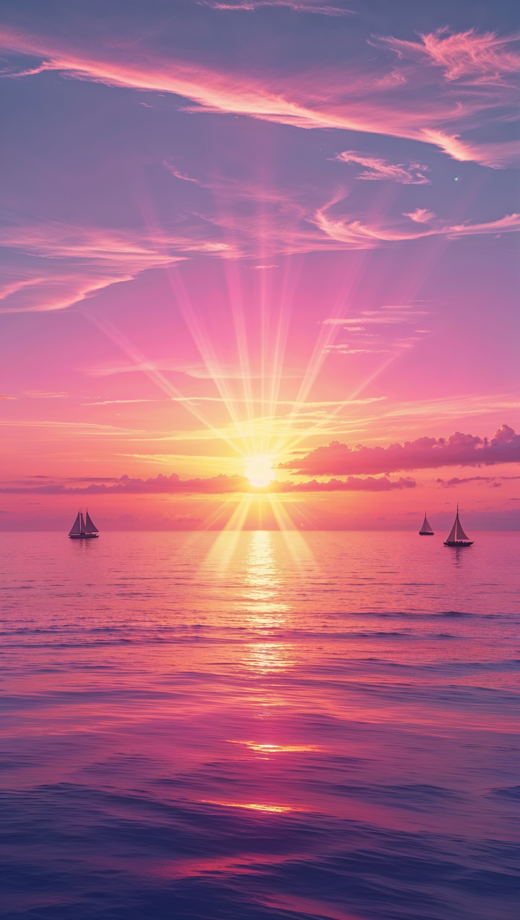 1664x2944 A sunset over a tranquil ocean with rays of enlightenment – Nirvana themed background