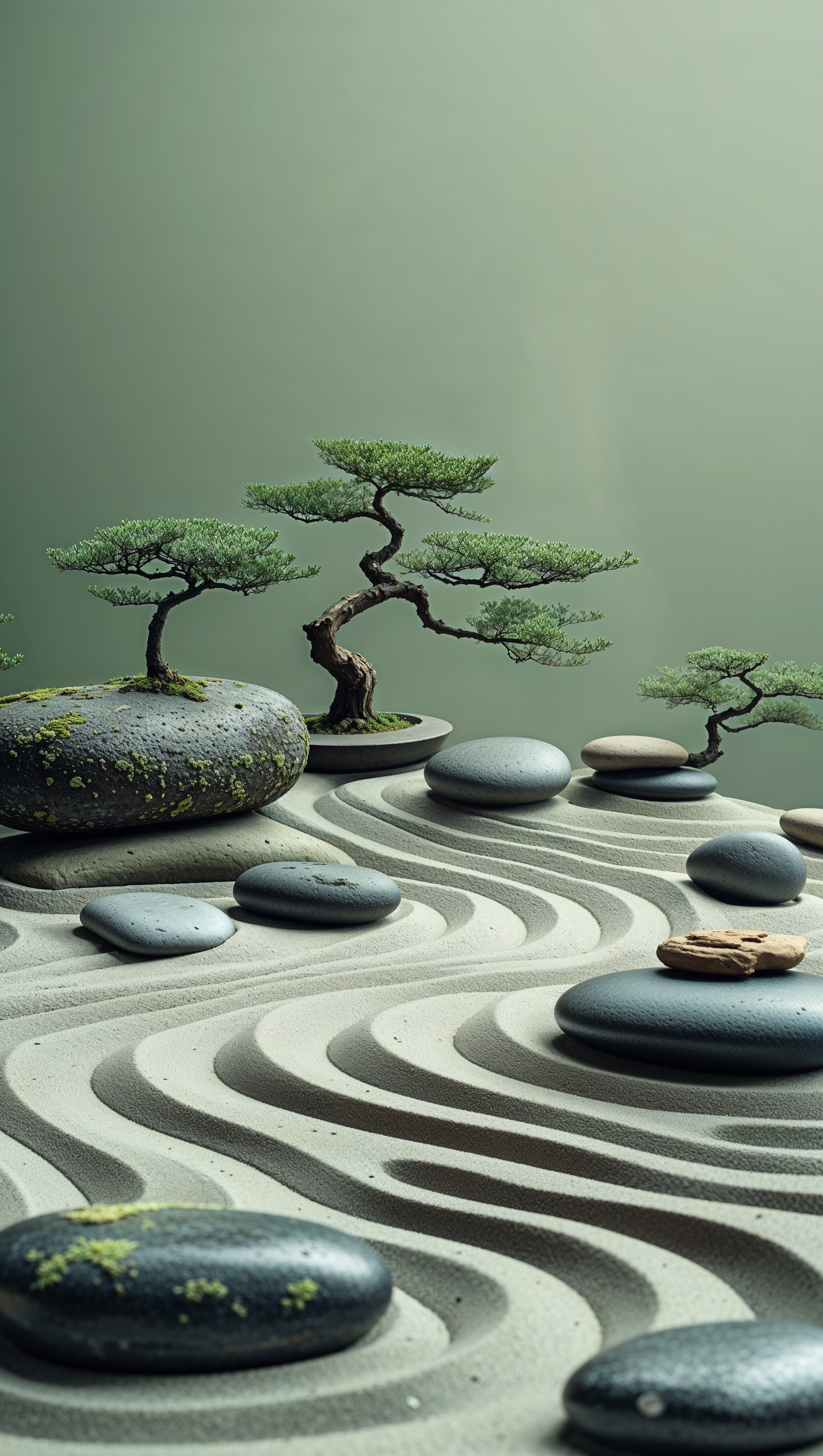 1664x2944 Zen garden with stones and raked sand, symbol of inner peace – nirvana iPhone background