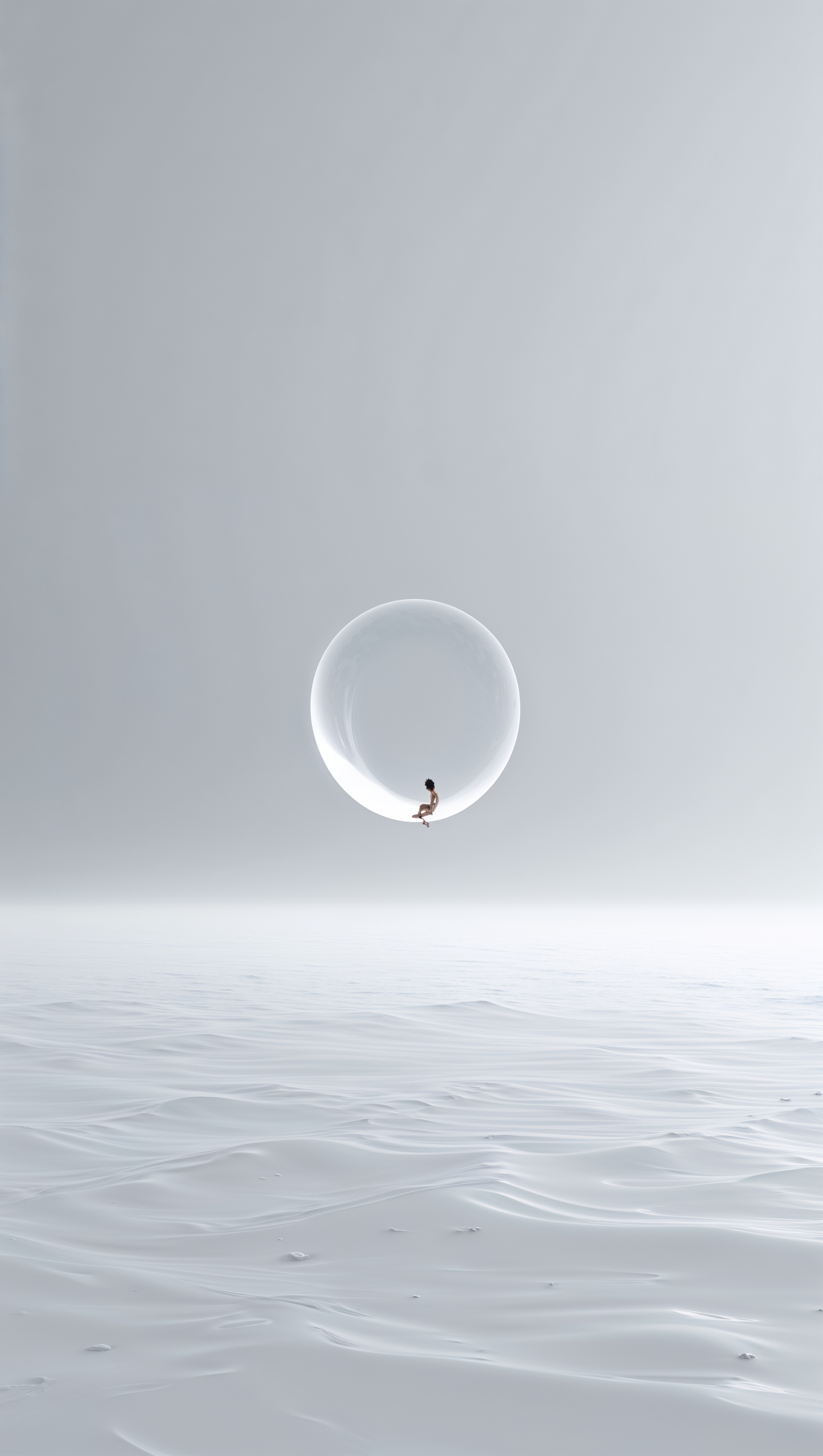 1664x2944 Infinite white space with single floating soul – minimalist nirvana wallpaper