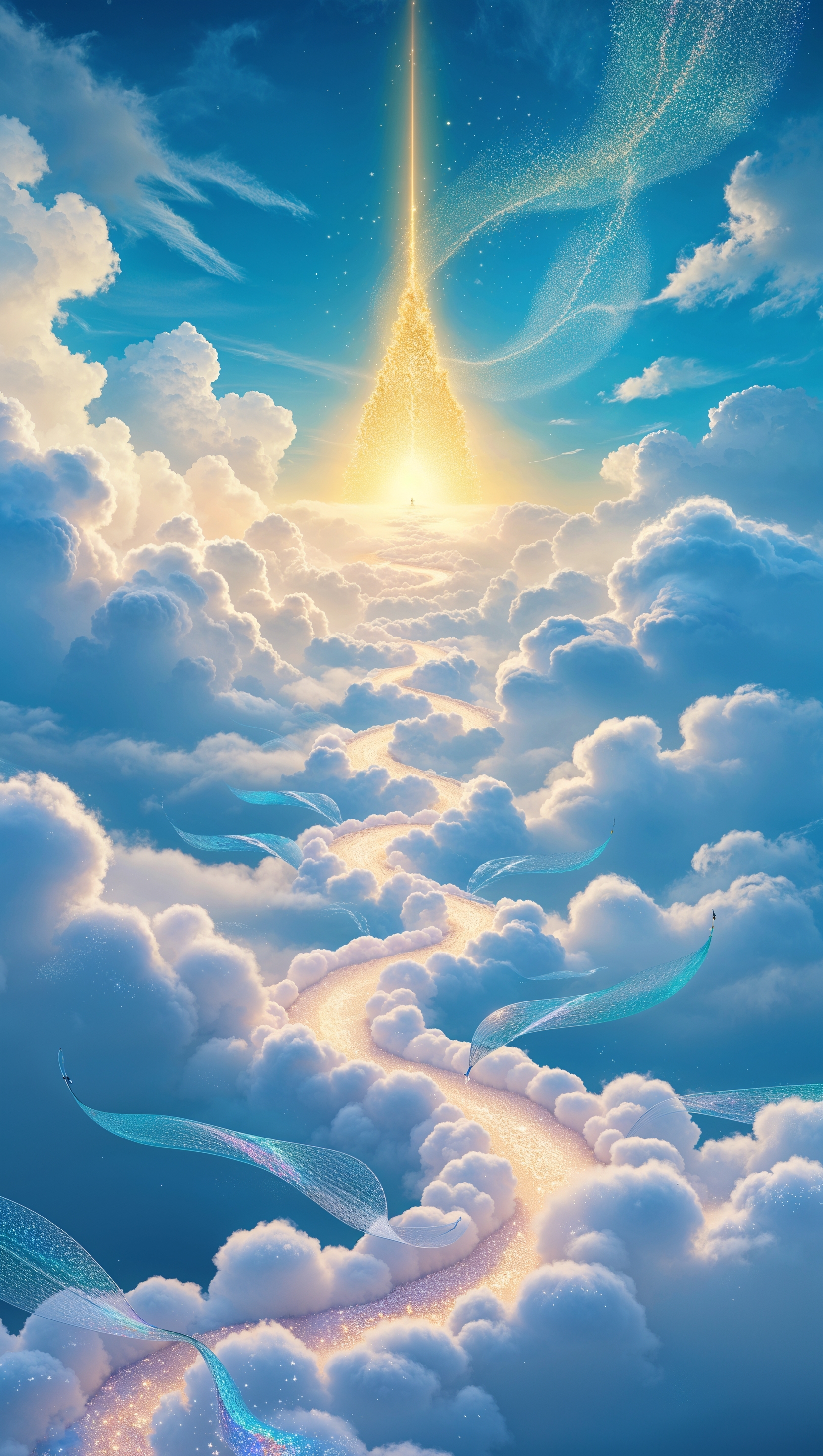 1664x2944 Path made of clouds leading to light – journey to nirvana