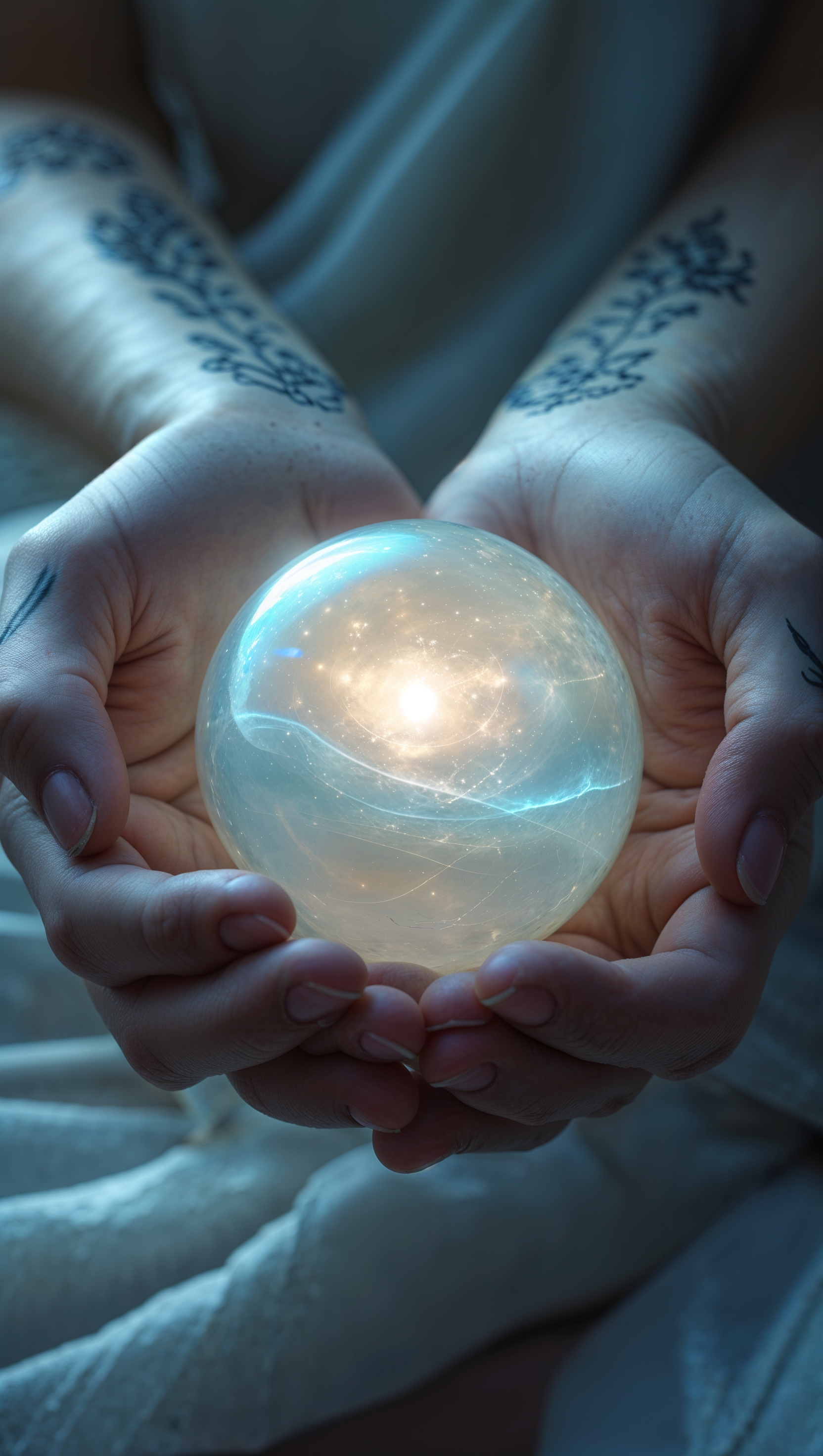 1664x2944 Hands holding glowing orb of peace – spiritual nirvana concept