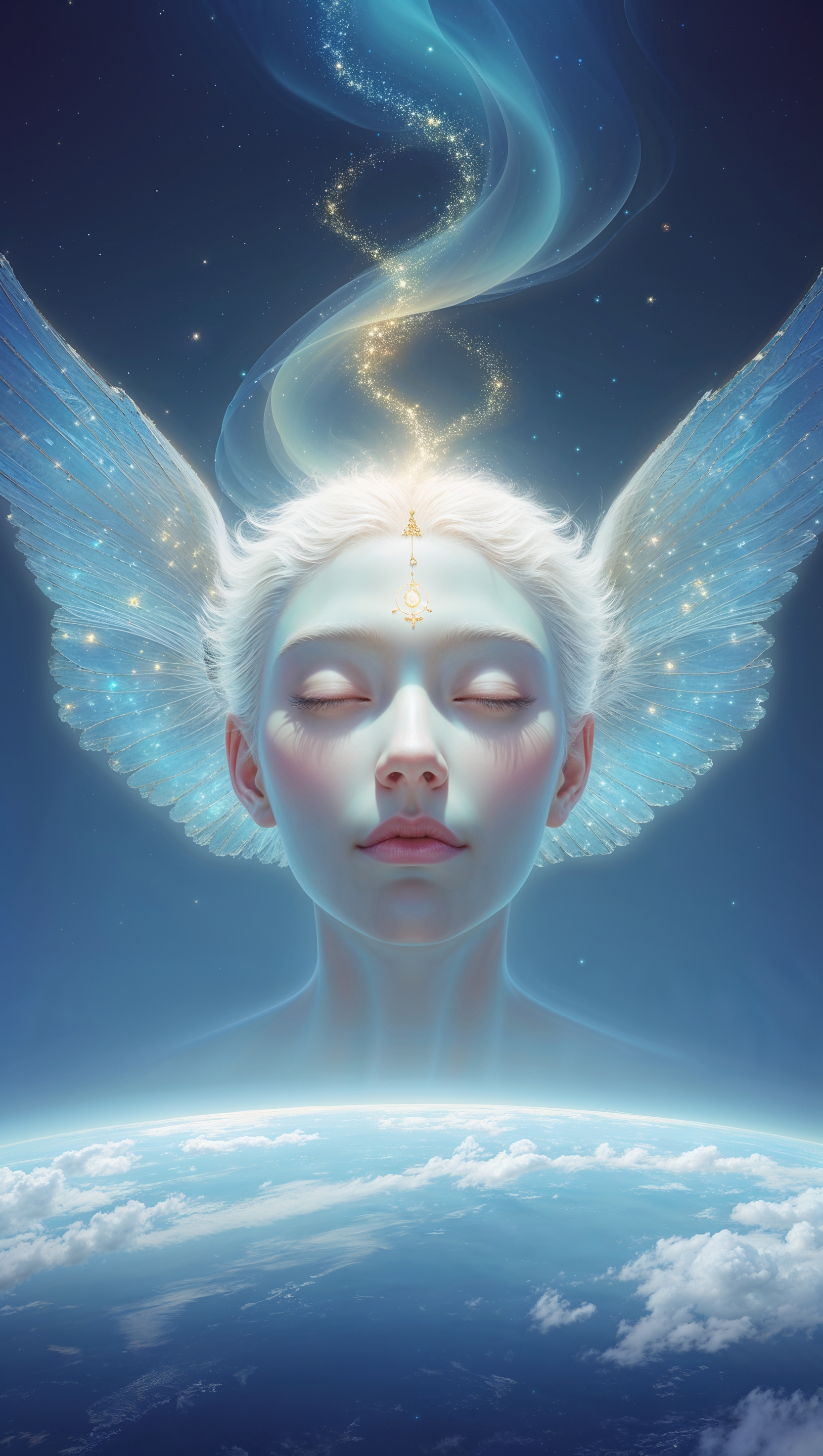 1664x2944 Ethereal spirit floating above Earth – symbol of nirvana