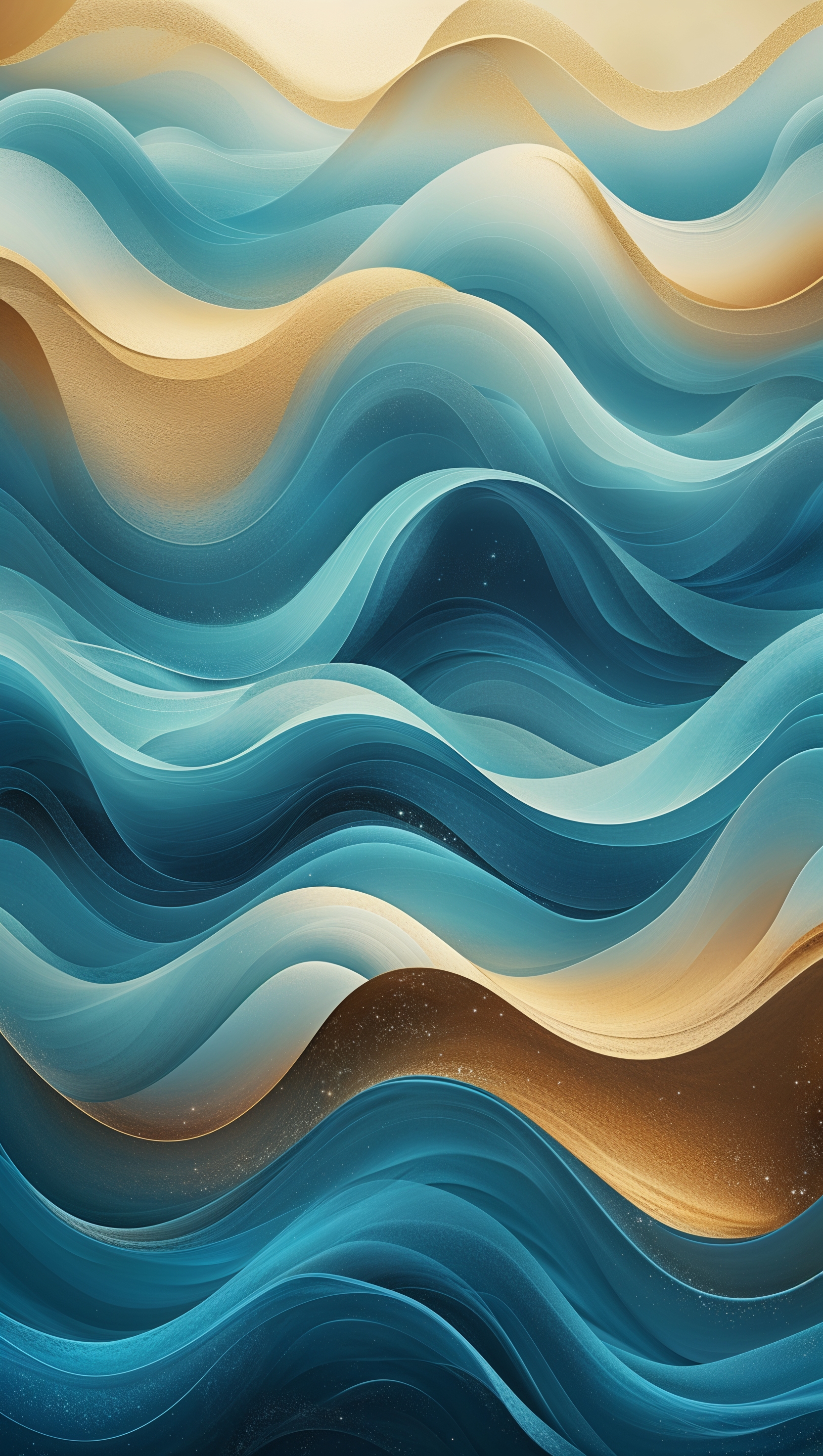 1664x2944 Blue and gold color waves blending softly – abstract nirvana wallpaper