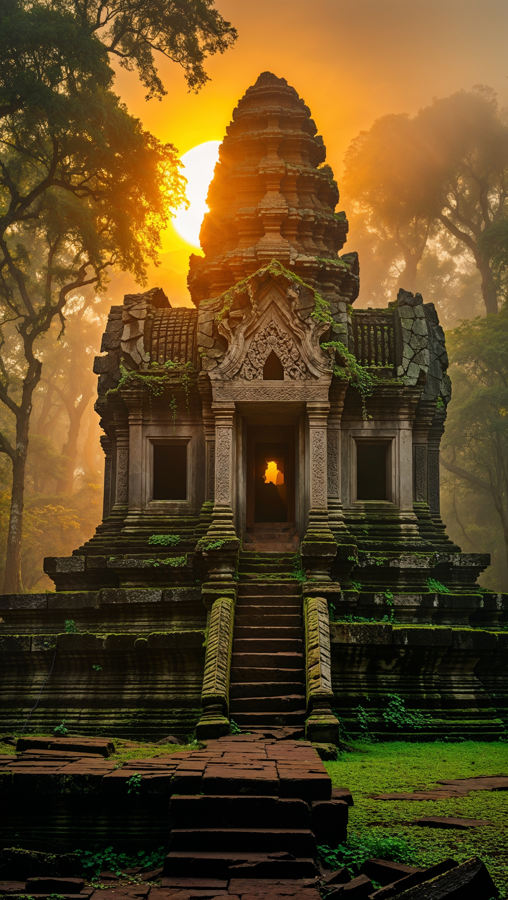 1664x2944 Golden sunrise behind ancient temple – spiritual awakening