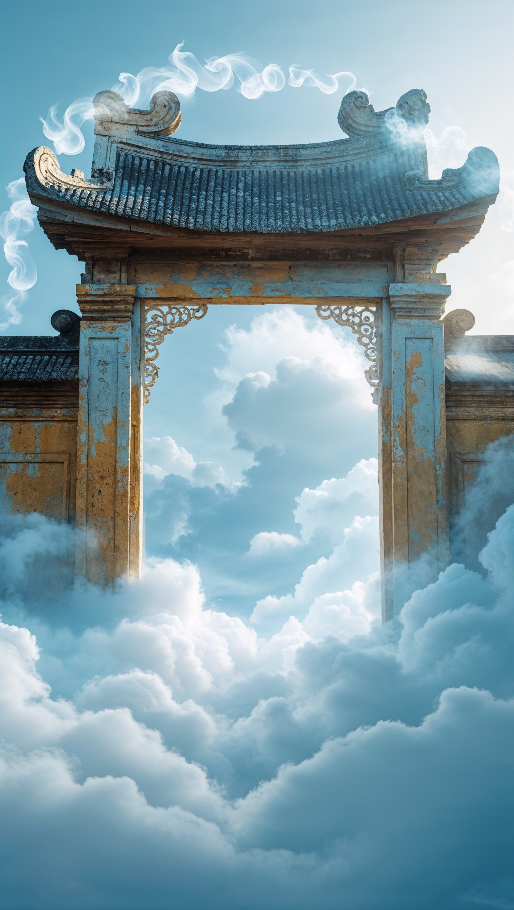 1664x2944 Ancient gate in clouds leading to nirvana – mystical iPhone background