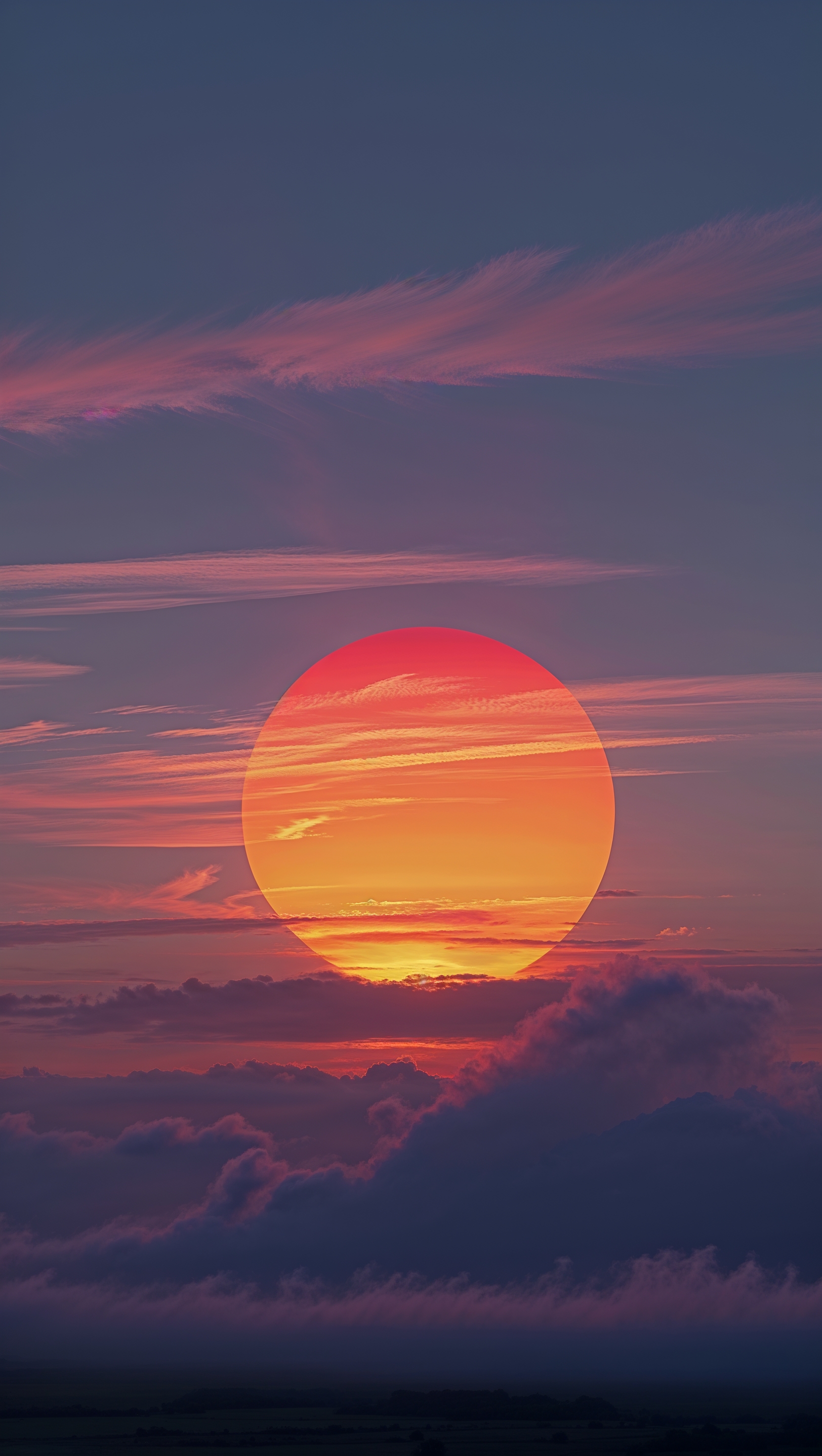 1664x2944 Red sun behind clouds with a calm and mysterious mood