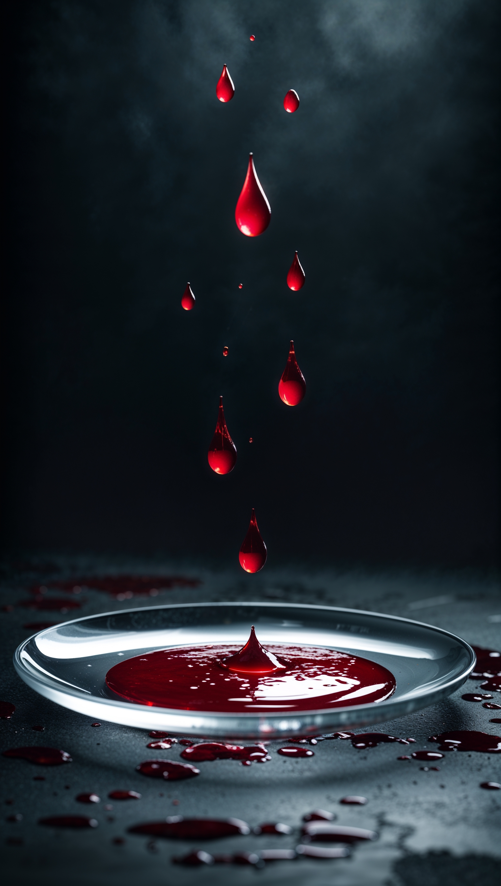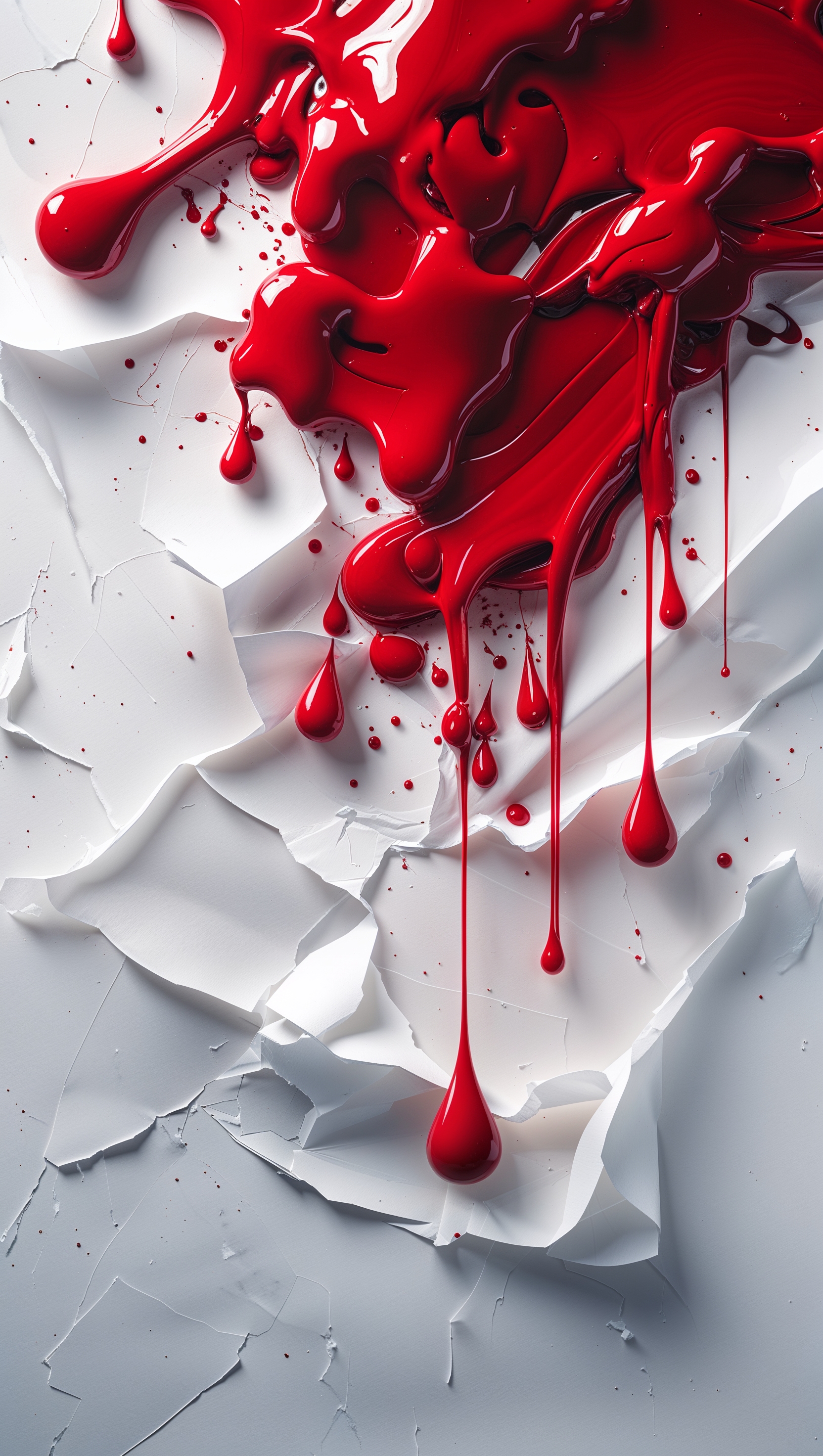 1664x2944 Red paint dripping from above onto white paper with artistic effect
