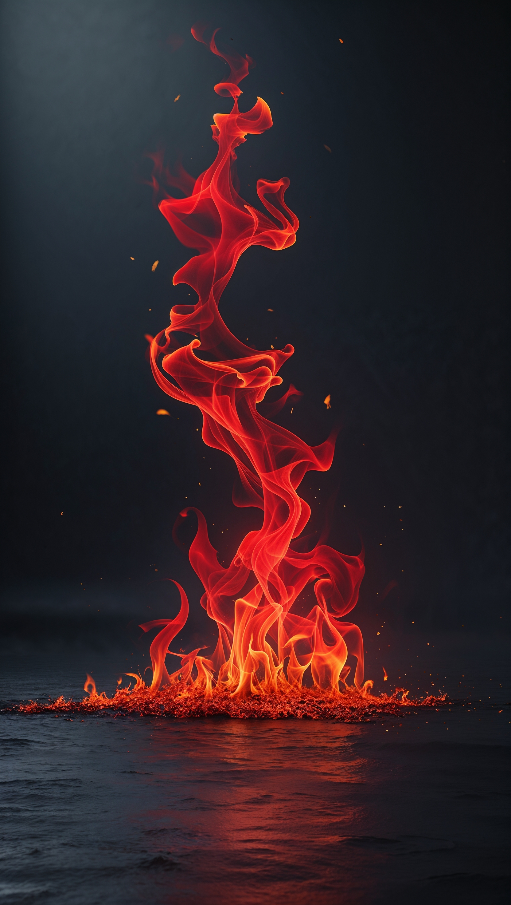 1664x2944 Red flames dancing in darkness with a minimalistic design