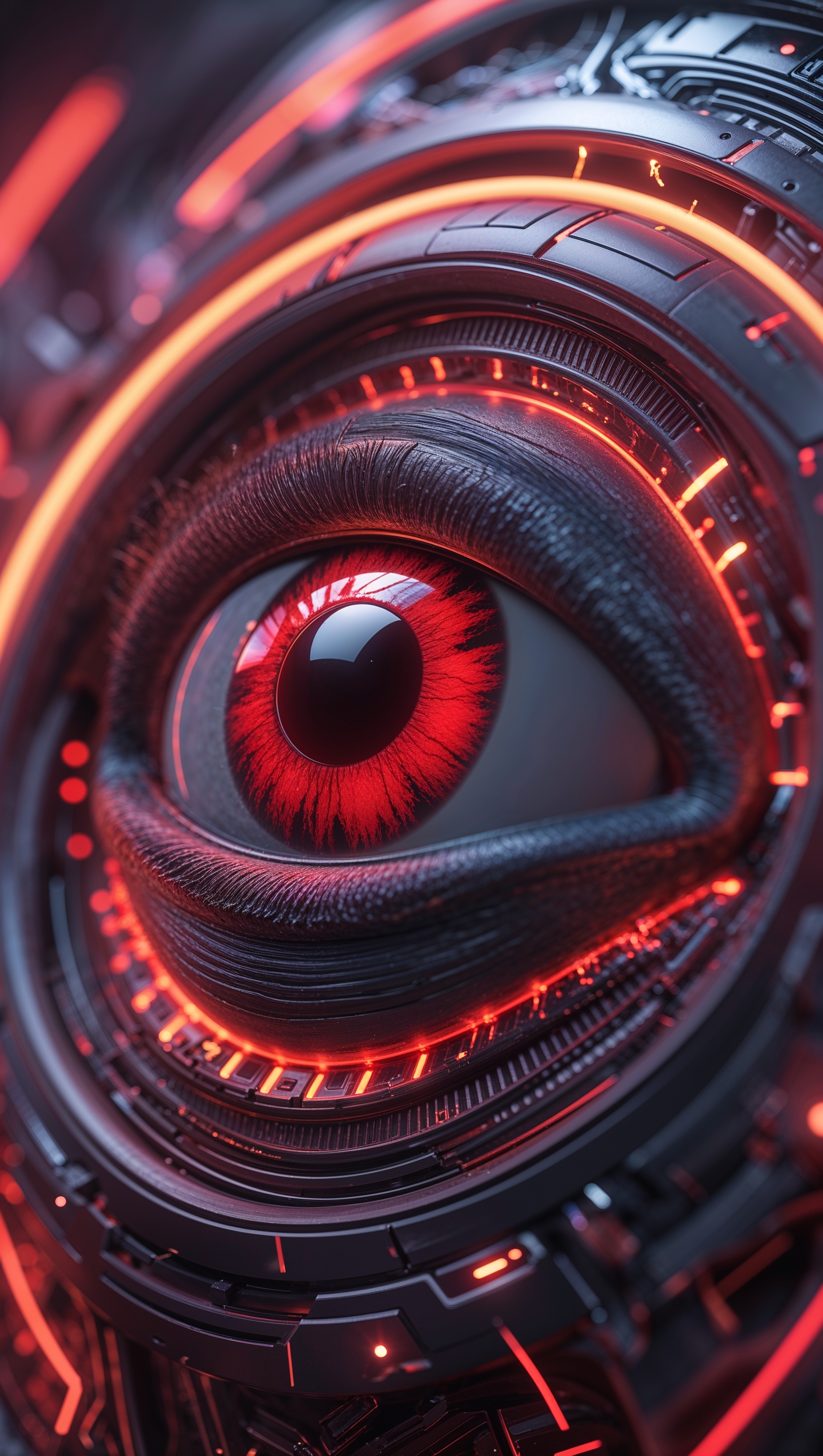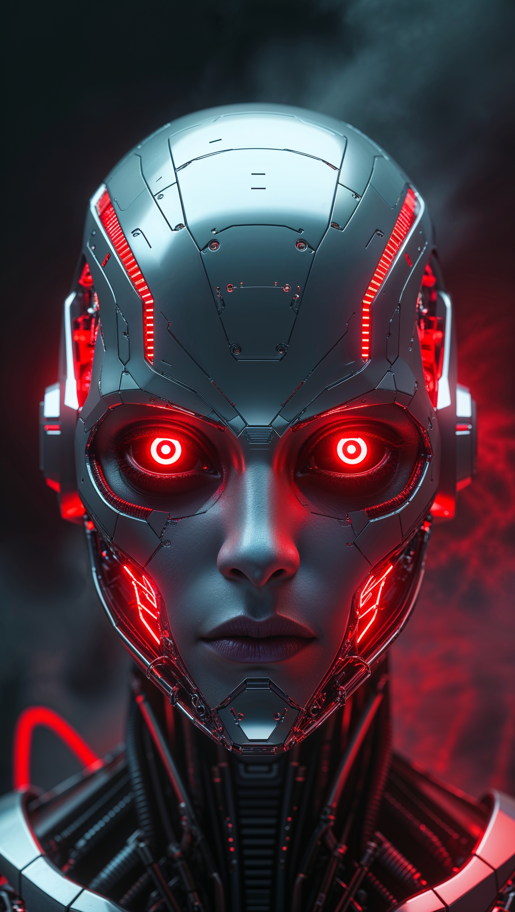 1664x2944 A robotic face glowing red from within, sci-fi design