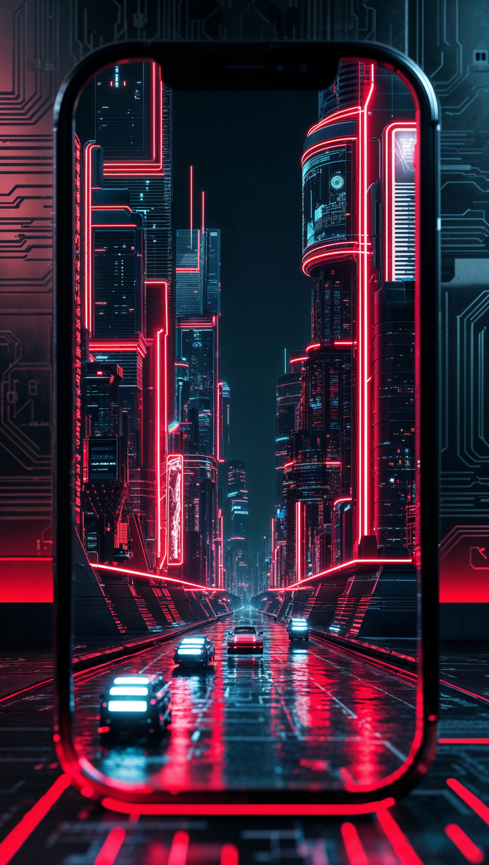 1664x2944 Red digital design in cyberpunk style for iPhone