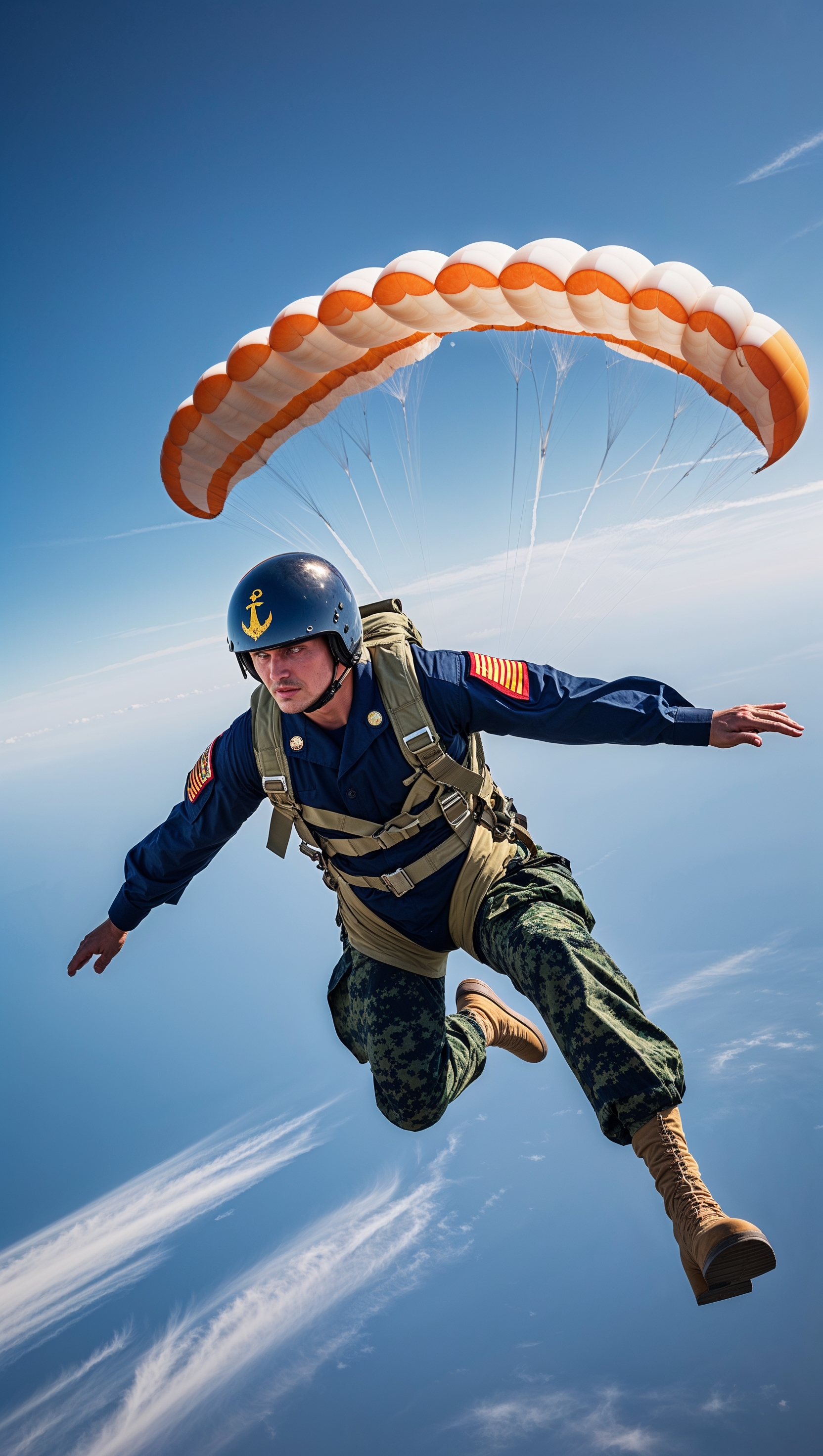 1664x2944 A marine soldier parachuting from an airplane at high altitude