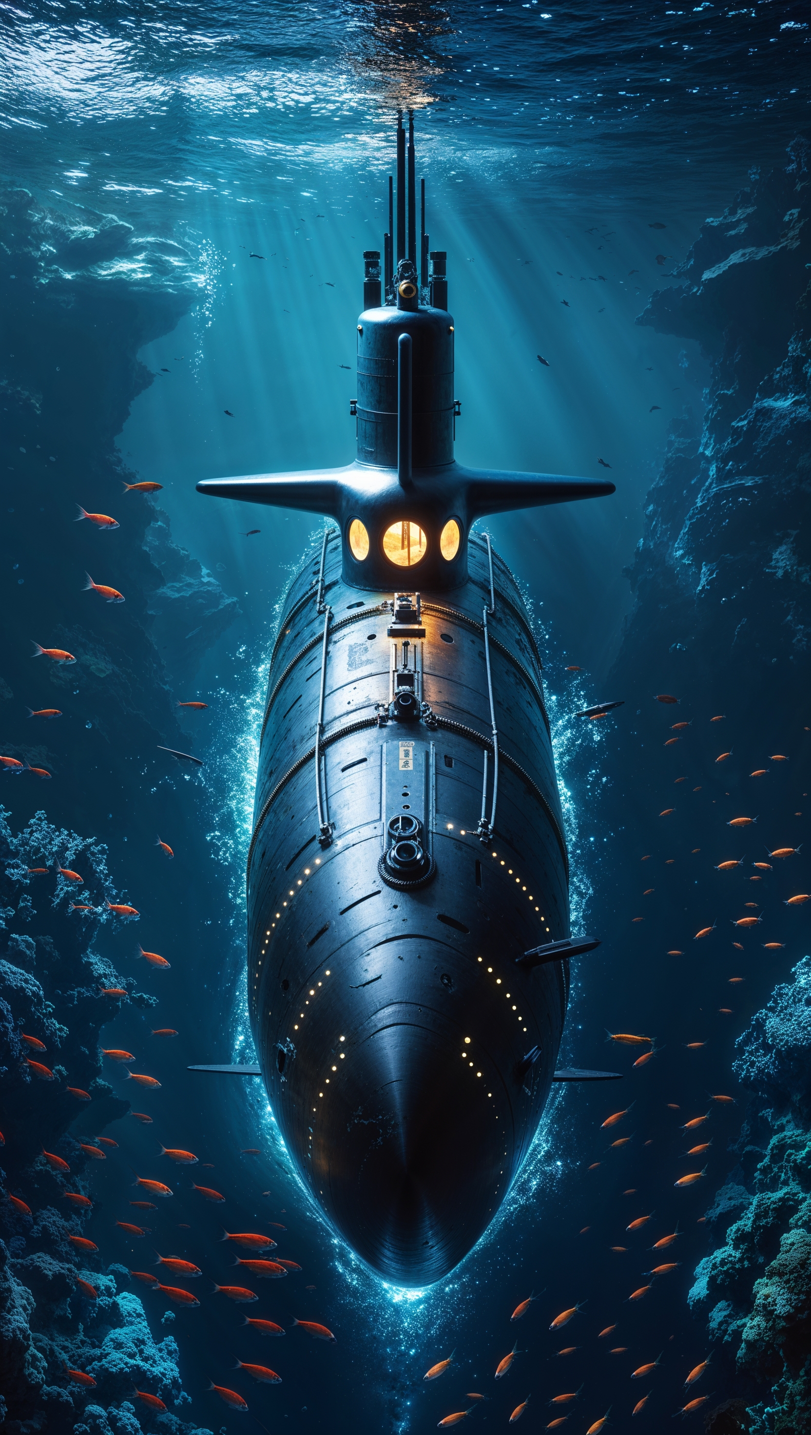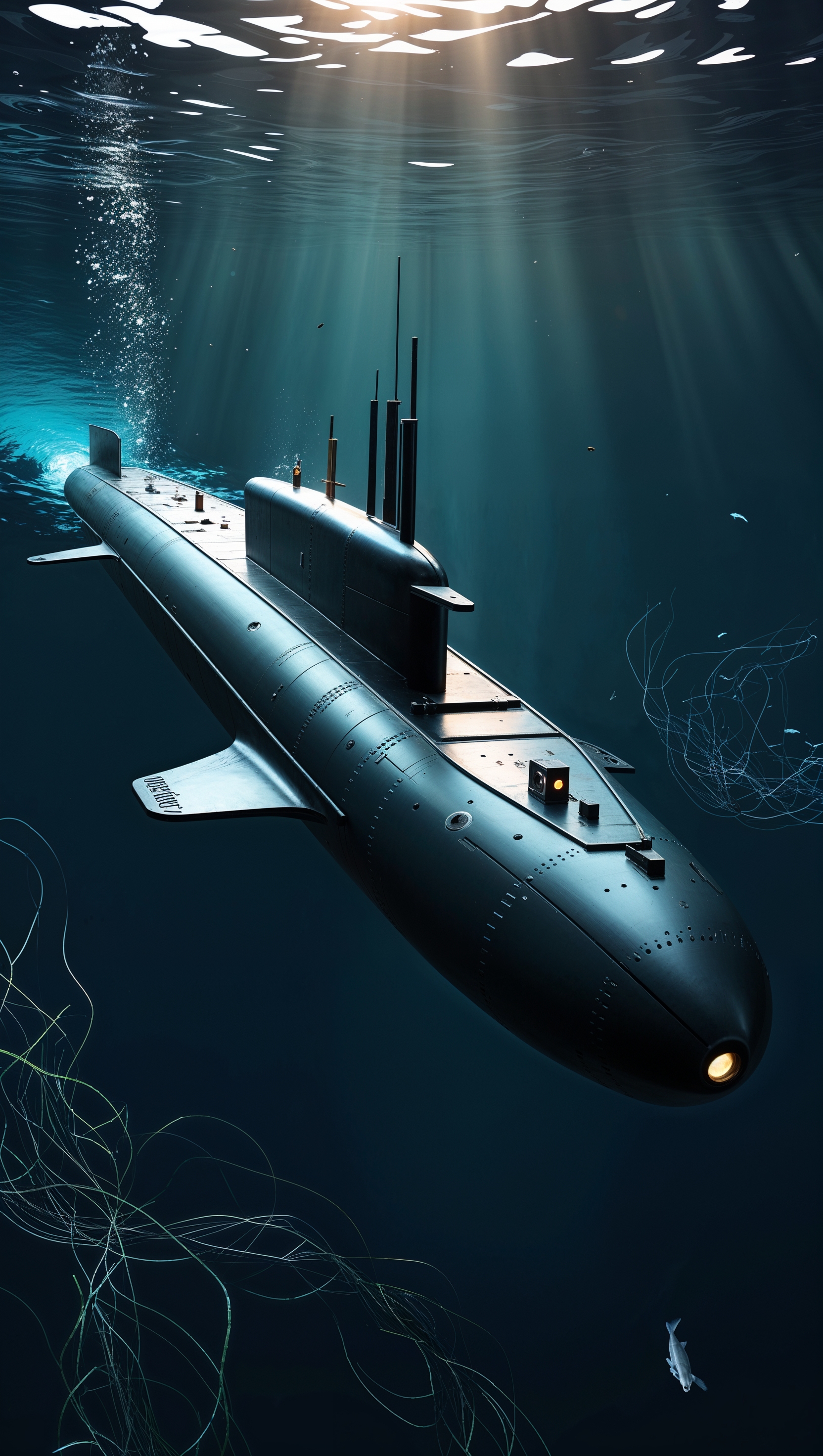 1664x2944 iPhone wallpaper with the design of an advanced submarine