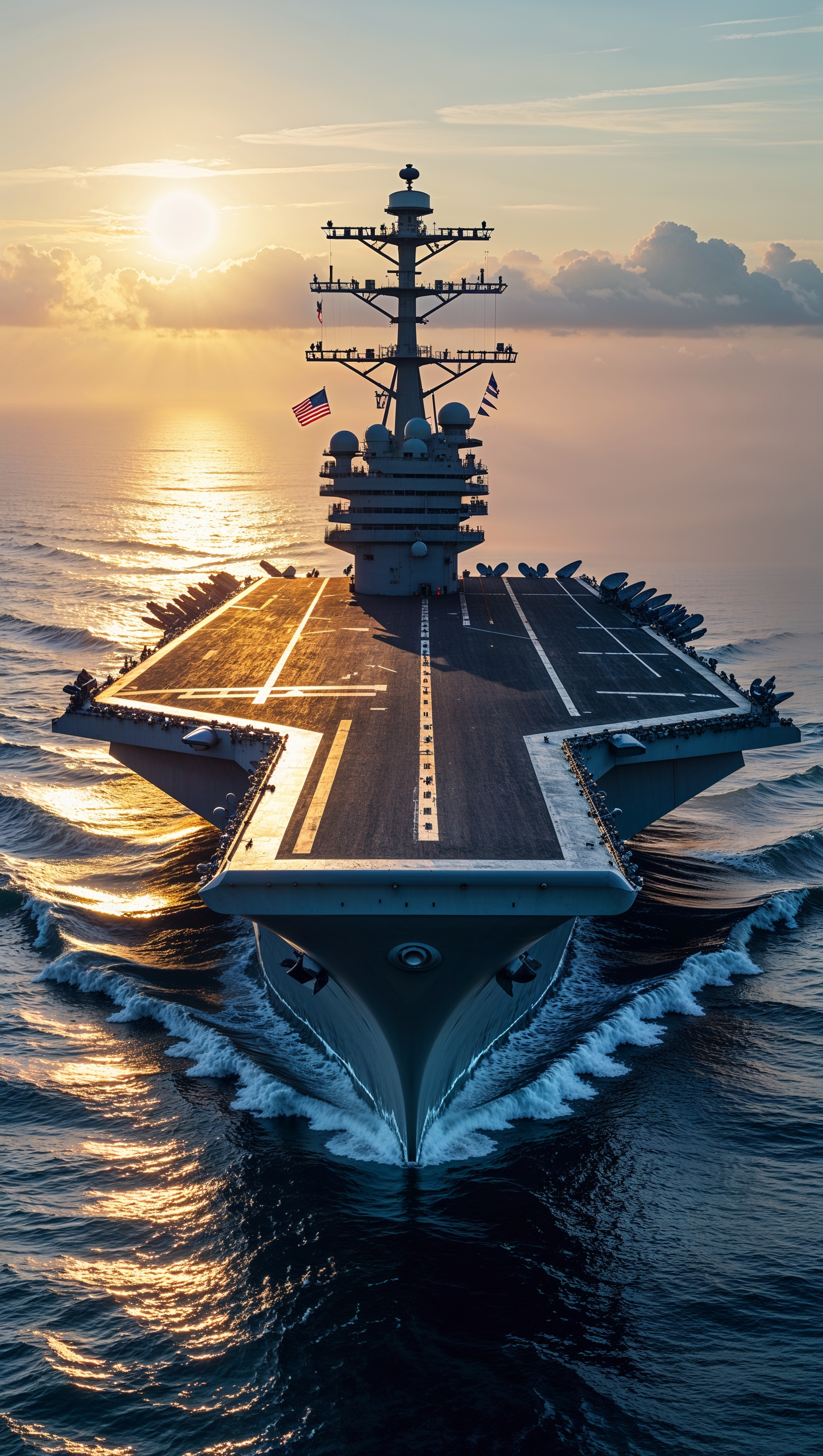 1664x2944 An image of an aircraft carrier launching planes into the sky