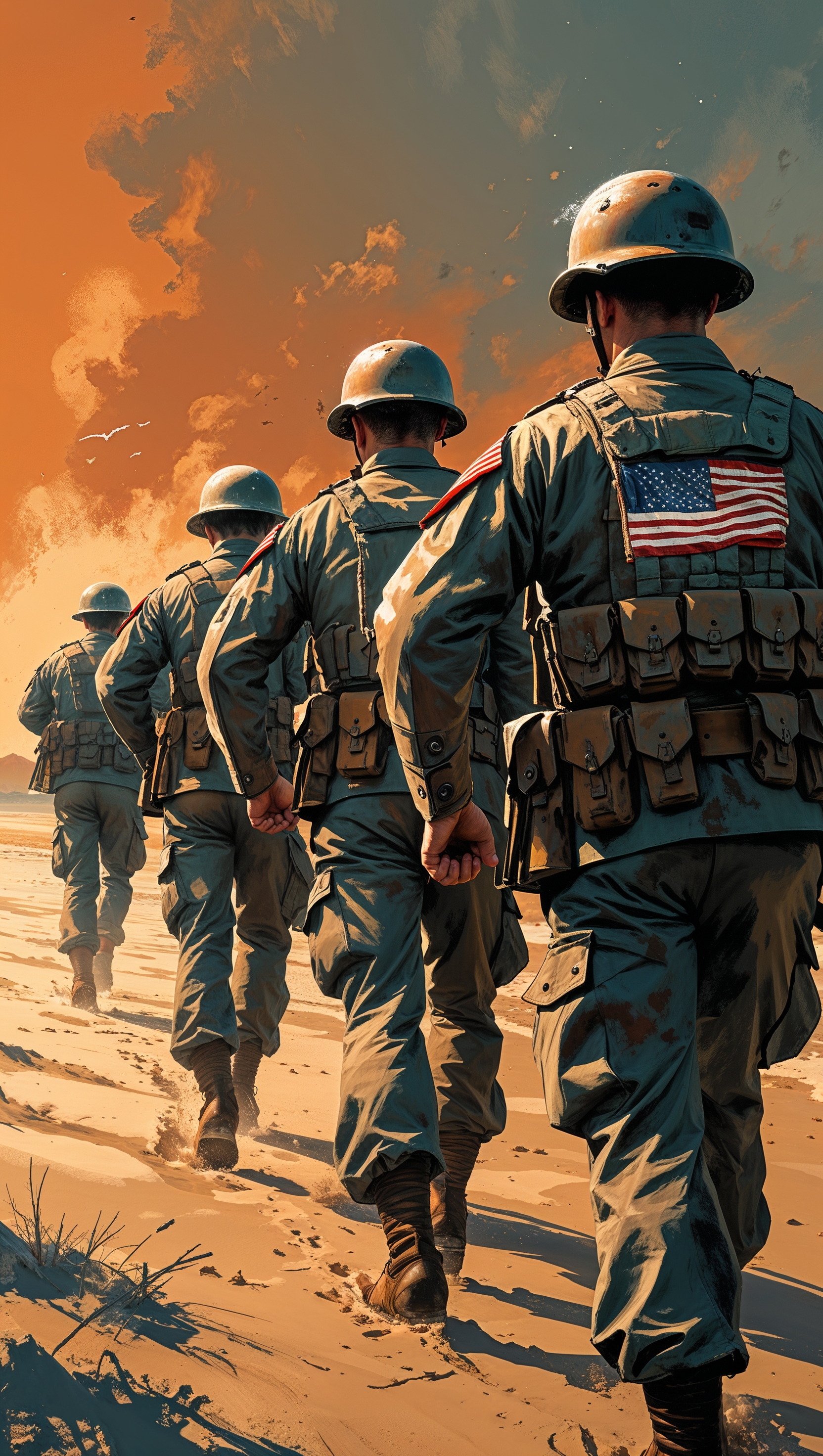 1664x2944 iPhone wallpaper with marine forces marching on the beach