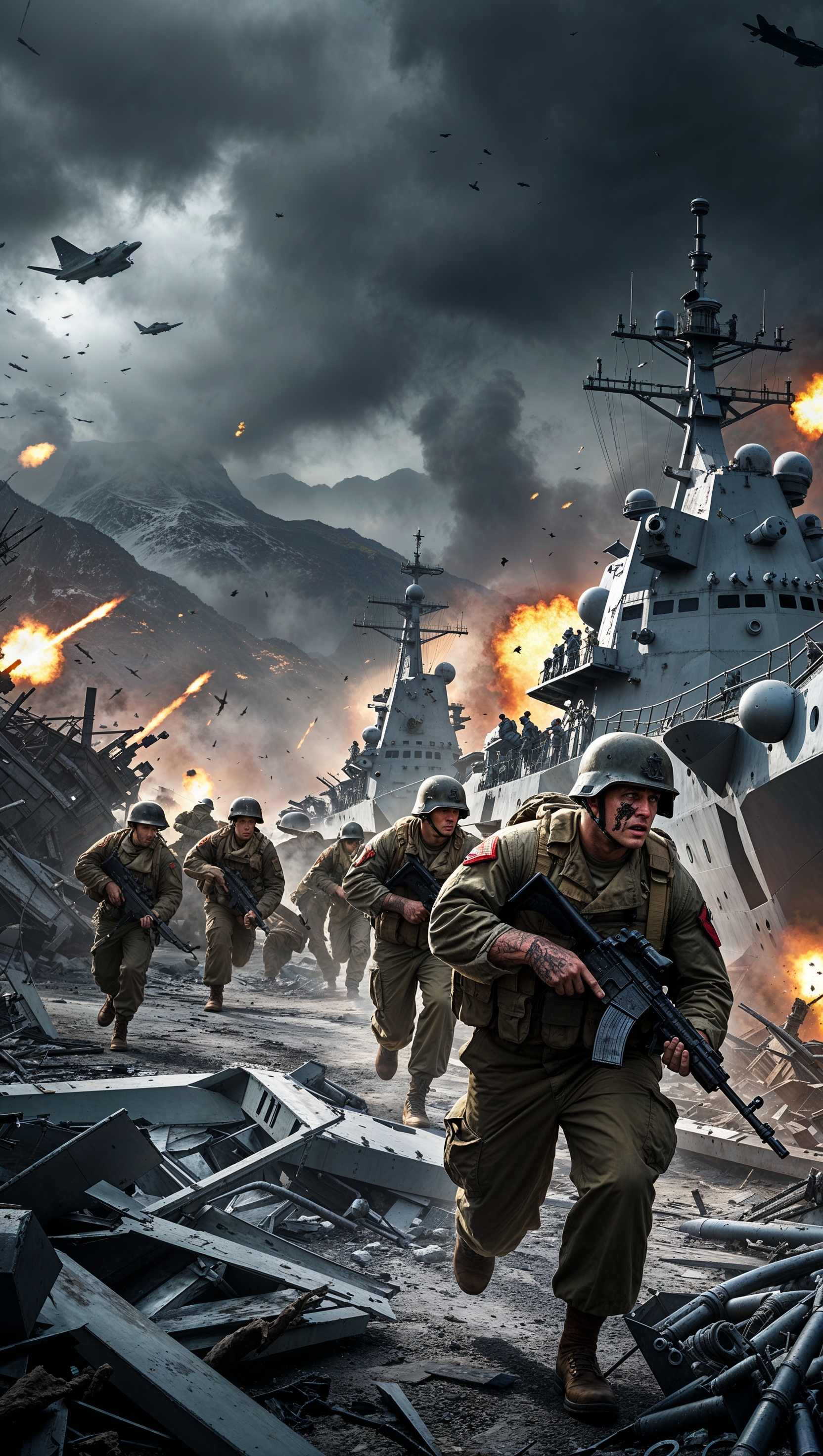 1664x2944 An image of marine forces fighting the enemy on the beach