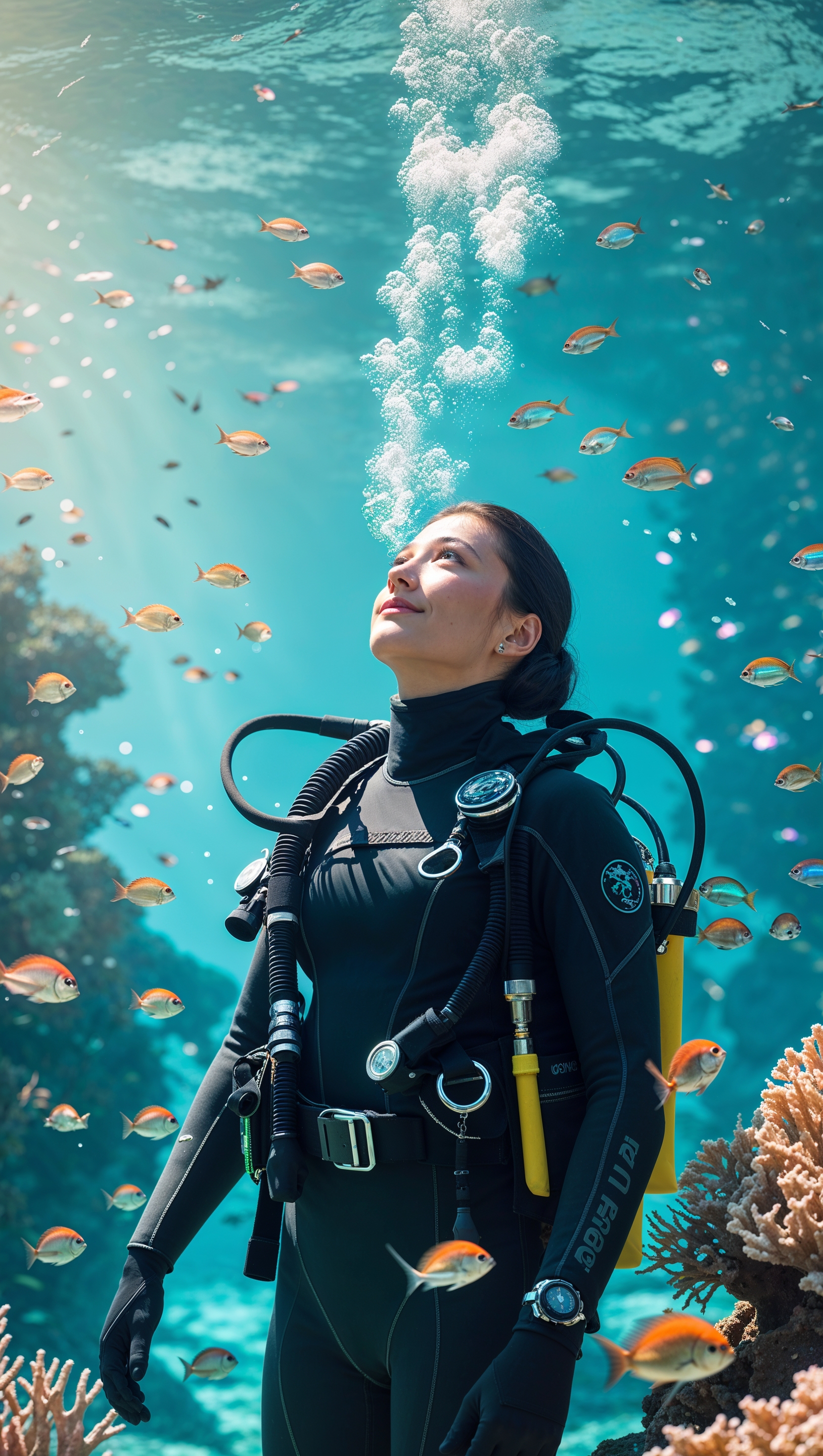 1664x2944 iPhone wallpaper with an image of a marine diver underwater
