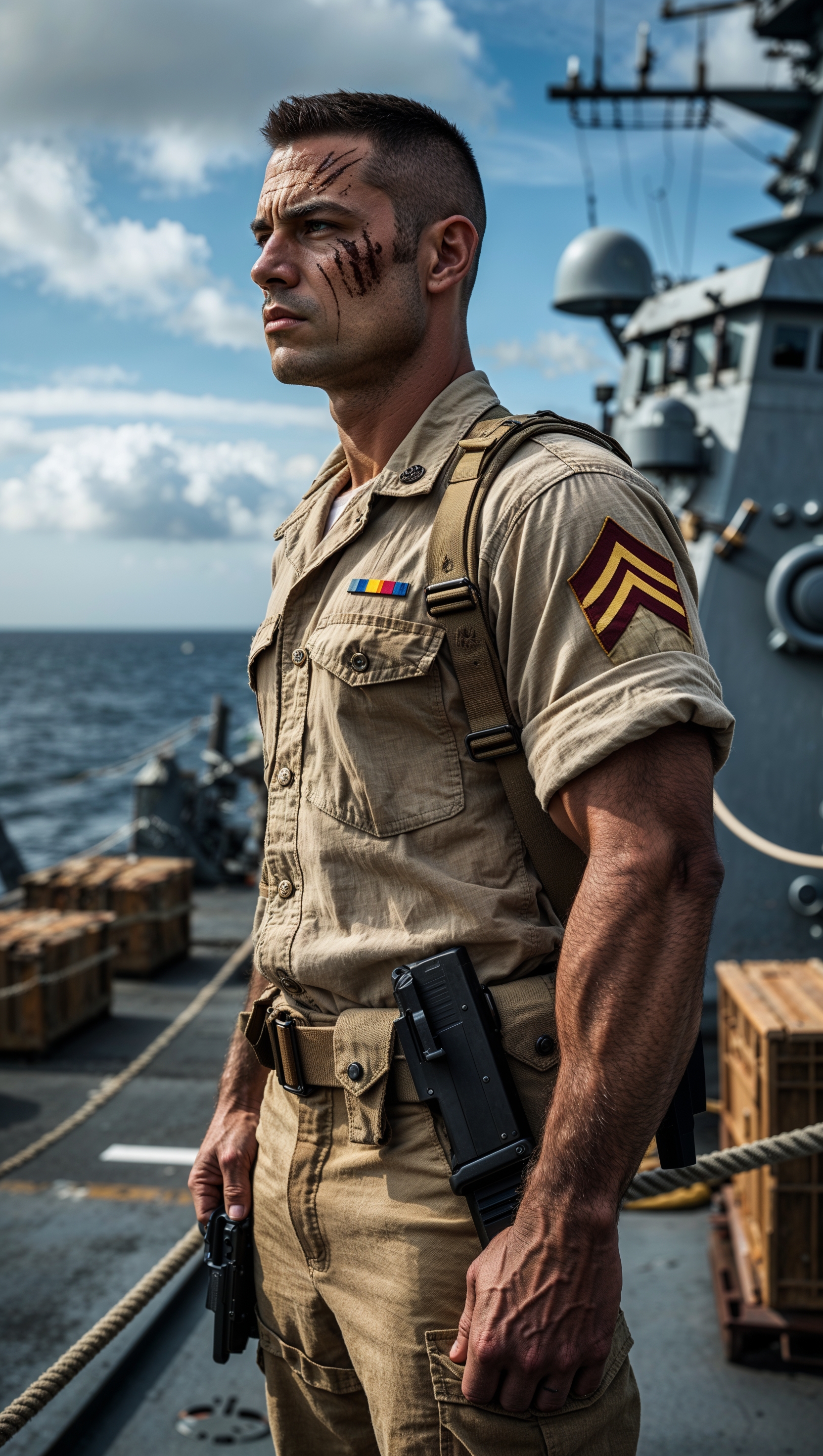 1664x2944 An image of a marine soldier on standby aboard a ship
