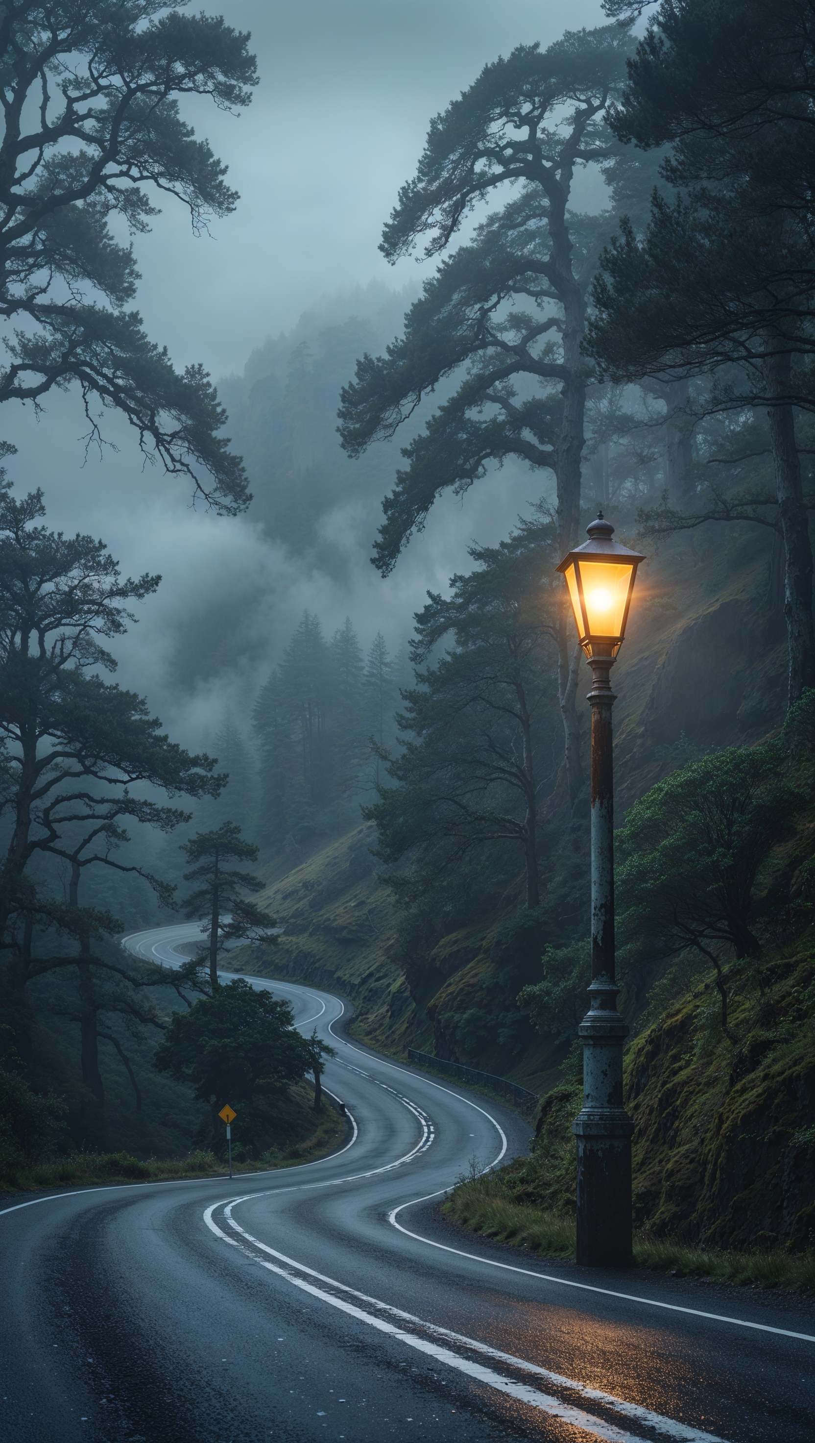 1664x2944 A road fading into the mist, symbolizing an uncertain destiny