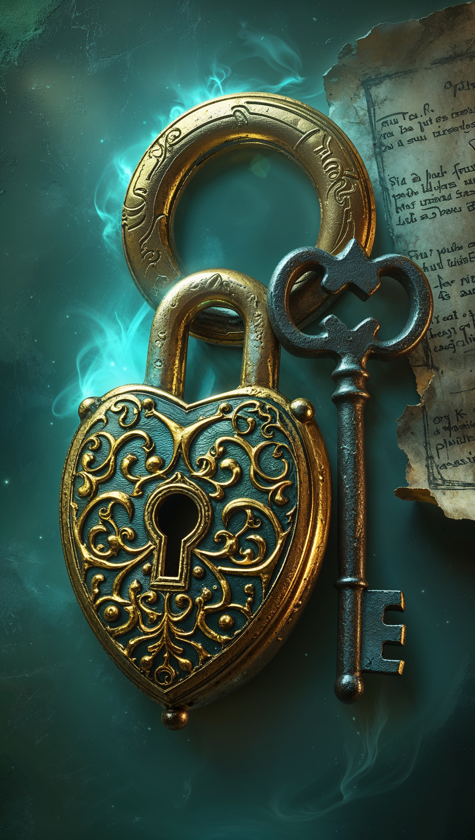 1664x2944 A lock and key on a mysterious background, symbolizing destiny discovery