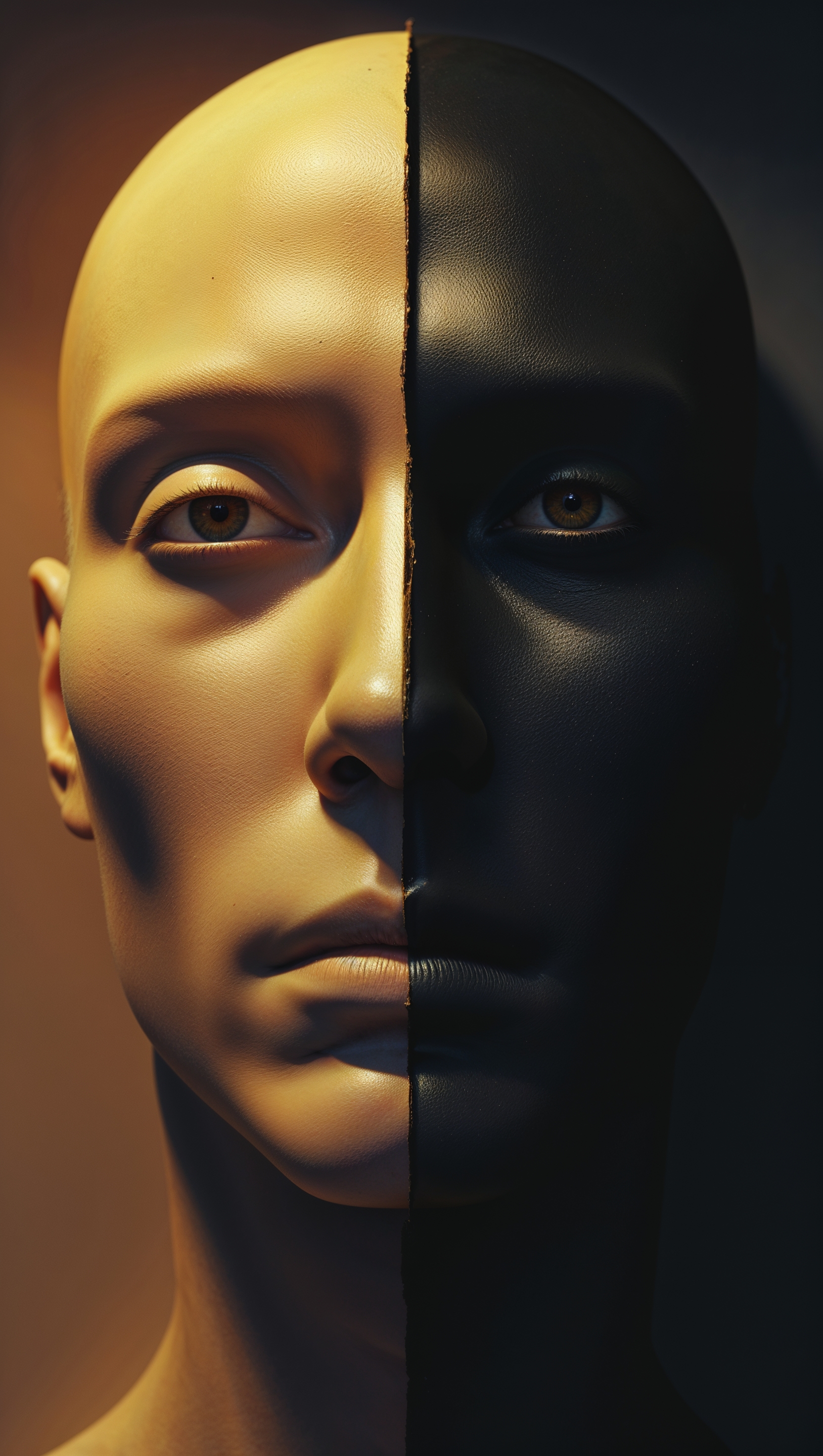 1664x2944 A human face half in shadow, half in light, duality of destiny